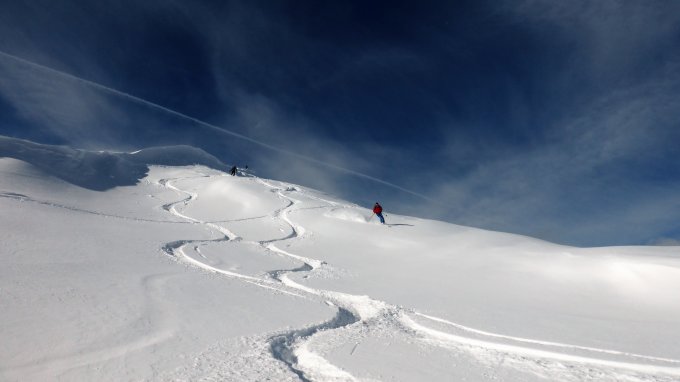 Weisshorn (2653m)Prätschli – P 1938 – Under Sandboda – Prätschalp – Rot Tritt – Scheidegg – Fuggs – EWA26 – Brüggerhorn – Sattelhütte – Aroser Weisshorn – Sattelhütte – Piste 10 – Mittler Hütta – Piste 15a - Prätschli