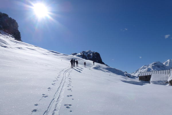 Ab Pontresina (1805 m) zuerst auf der Piste, dann der Schneise folgend zur Alp Languard (2205 m). Weiter durch das Val Languard zur Fuorcla Pischa (2848 m) und über den Nordhang zum Wintergipfel (Punkt 3137)