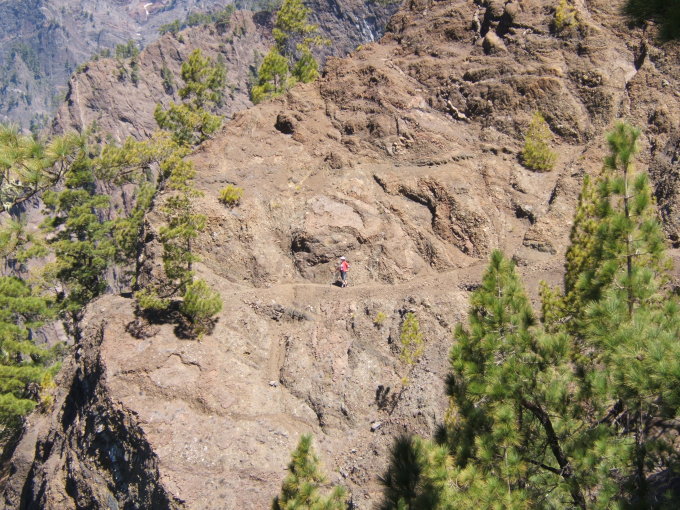 Vom Parkplatz am Aussichtspunkt La Cumbrecita folgt man dem markierten Weg (LP 13.1) ausgesetzt über Bänder bis zum Rücken des Lomo del Escuchadero, ein kleines Gipfelchen kann in einigen Minuten Kraxelei erklommen werden-lohnend da bessere Aussicht...!
