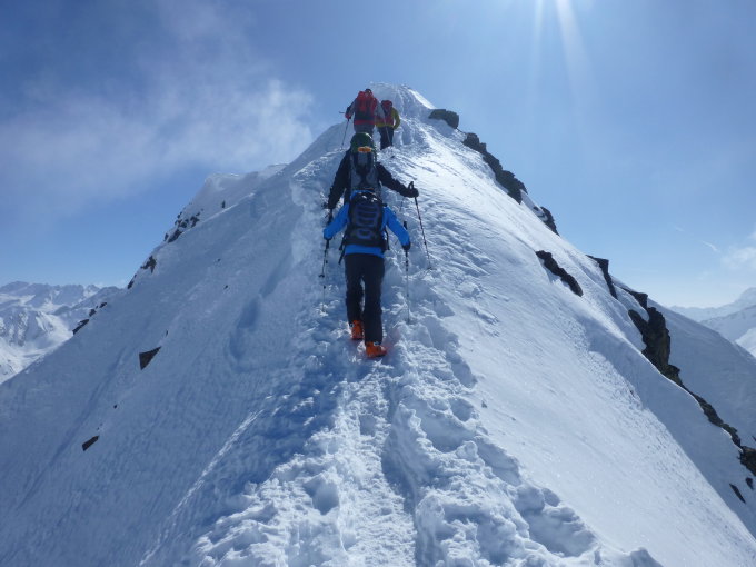 Ab Sedrun mit der Seilbahn (90.– pro Fahrt, Reservierung am Vorabend bis 1600 bei Disentistourismus) nach Stavel sut il Tgom. Von hier stets dem Rücken folgen zum ersten Aufschwung bei Punkt 2183. Weiter zum zweiten Aufschwung bei Punkt 2387. Über den Rücken nach dil Tgom. Kurze Abfahrt zu Punkt 2408. Aufstieg über leicht coupiertes Gelände zum Nordgrat. Beim Skidepot war ende und wir haben uns nicht für den Gipfelaufstieg entschieden. Mit Pickel sollte es aber machbar sein.