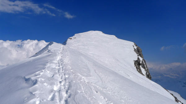 Ab Chaisertor der Normalroute folgen.(Aufstieg mit Drahtseilsicherung, wo es nicht vom Schneezugedeckt ist). Manchmal lohnt es sich, die Ski mitzunehmen, wenn der Gipfelrücken nicht zu stark abgeblasen ist