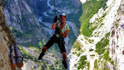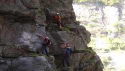 Der Abstieg folgt man den Wegspuren. Zwei Abseilstellen von 30m und 50m führen schliesslich wieder auf die italienische Pass Strasse. Von hier in 10min. wieder zurück zur Mehrzweckgebäude, die sich gleich vor dem Zoll befindet. (5h)