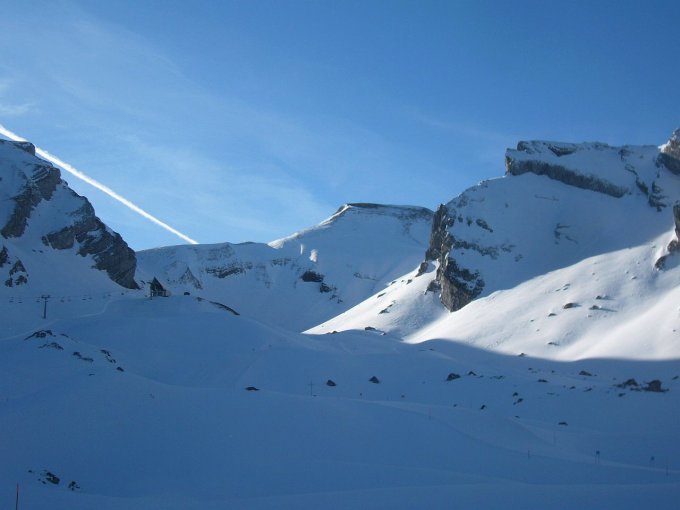 Lawinensichere Verhältnisse für den Steilaufstieg ins Hinter Jochli notwendig, bei Hartfirn eventuell Steigeisen.