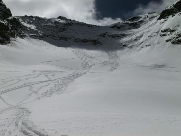 Von St. Moritz Parkplatz start Seilbahn Abfahrt. Überqueren Sie die Straße richtung Richtung Süden bis Ende Hanensee Piste von Corvatsch, rischtung Nord bis etwa 2350m , aber richtung Nordost-ost bis etwa 2700m , rischtung Norden bis Piz San Gian, di letze 150m hohe sind steil 35-37° und Lawinengefahr,