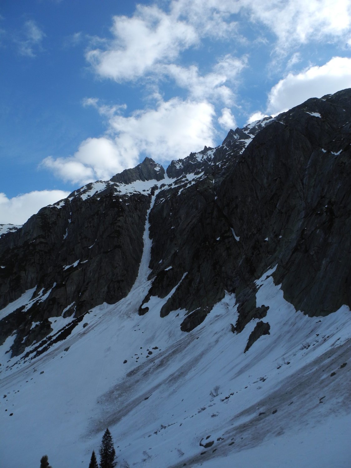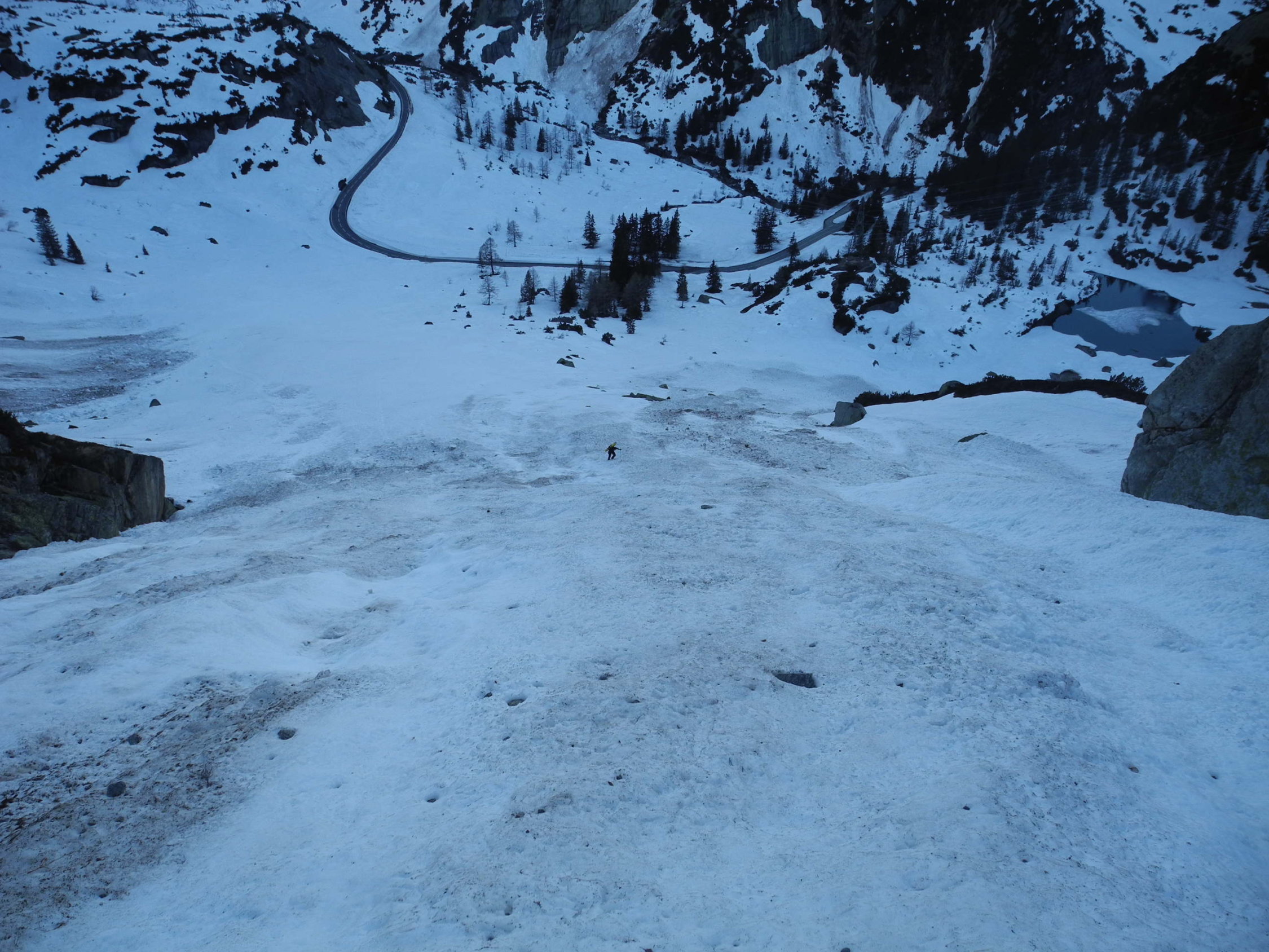 Von Passstrasse Grimsel nach langem Tunnel(Chüenzentennlen,ca 1500m)direkt an gut sichtbaren Einstieg,nach ca. 250hm Skis aufbinden und zu Fuss weiter(35-40°),Engstelle(ca 2/3 Rinne) 45°,oben wieder etwas abflachend,über Zwischenschneefeld durch Abschlussculi in Scharte(ca. 2600m).Abfahrt dito