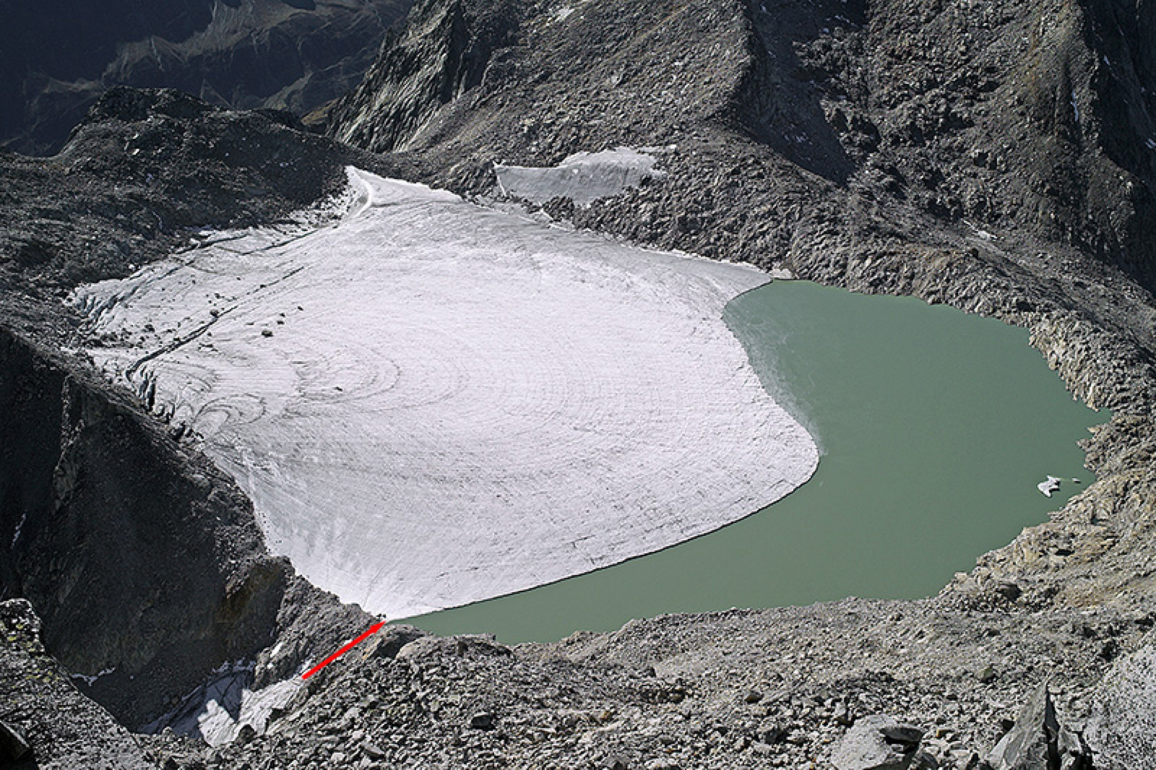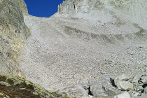 Ab Baracke quert man den dortigen Geröllboden in nordwestlicher Richtung und steigt dann Steinmännchen und vereinzelten Begehungsspuren folgend die steile, aber überraschend gut gangbare Geröllhalde empor zum Gerenpass.