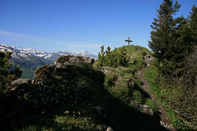Route: Sargans Manor (483) - Schloss - Gonzenwald - Leitern - Älpli (1'337) - weglos über Weide nach Wang (1'583) - zwischen Lawinenverbauungen zum Gipfel (1'830) - Folla (1'668) - weglos via Pkt. 1'857 zum Tschugga (1'881) (Steinmann) - weglos zum Chammboden (1'702) - Tschuggen Säss - oberhalb Hinterspina Weg entlang Felsband (Abzweigung bei alter Sagerei) - nach Vorderspina (1'281) - Talid (677) - Passati - Städtli Sargans (504) - Sargans Manor.