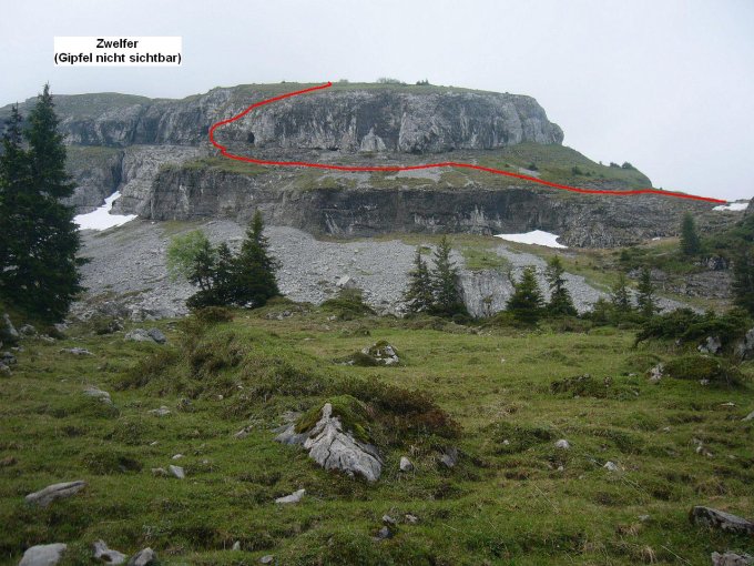 Am schnellsten gelangt man von Niederrickenbach über den Brändlisboden und weglos (T3) durch den Grotzenwald bis unter den Zwelfer. Etwas länger dafür markiert ist der Weg übers Brisenhaus. Vom P.1744m der an einem Wanderweg direkt unter dem Zwelfer liegt, stiegt man weglos über ein Grasband nach links (Osten) auf. Die Hänge sind zum Teil abschüssig und einige kleine Geröllfelder sowie Platten mit aufliegendem Rollmaterial müssen dabei überquert weden (T4). Nachdem man an dem darüberliegenden Fels eine Höhle erkennt sind es noch etwa 30m wo man auf einer Rampe weiter nach links oben steigen kann. Das Gelände wird nun ständig ausgesetzter und bei Nässe heikel (T5). Sobald die Steilstufe überwunden ist, wendet man sich nach rechts (Westen) und erreicht über ein Grasband das Plateau vom Zwelfer (T4). Das Plateau ist ein kleines Naturparadies wo viele seltene Pflanzen wachsen, da es wegen der Unzugänglichkeit nicht bewirtschftet und kaum von einem Menschen betreten wird. Nach 340m Aufstieg übers Plateau (T3) erreicht man schlussendlich den Gipfel mit dem kleinen Kreuz das luftig über senkrechten Felswänden steht.