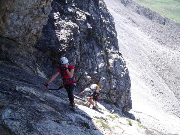 Schön eingerichteter Steig, der viel Klettern mit Felskontakt erlaubt.
