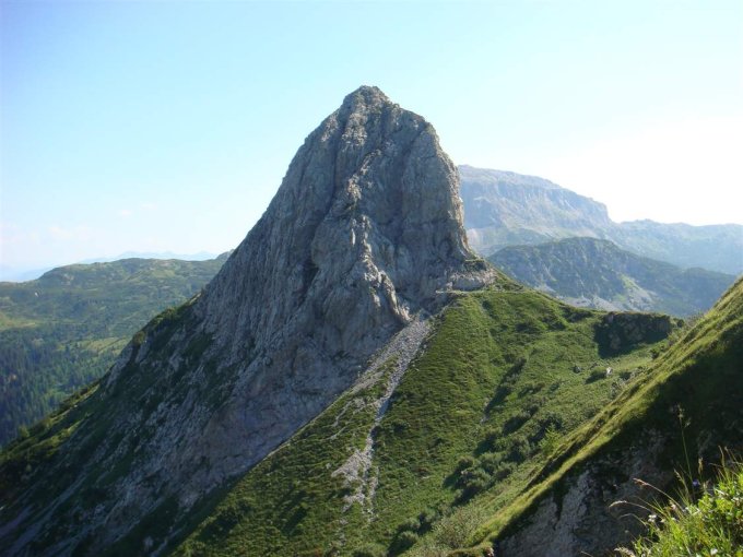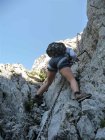 Klettersteig nur ca. 100 mH. Durchgehend mit Ketten gesichert. Verlauf entlang natürlicher Strukturen. 1 Stunde bis Gipfel.