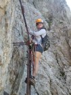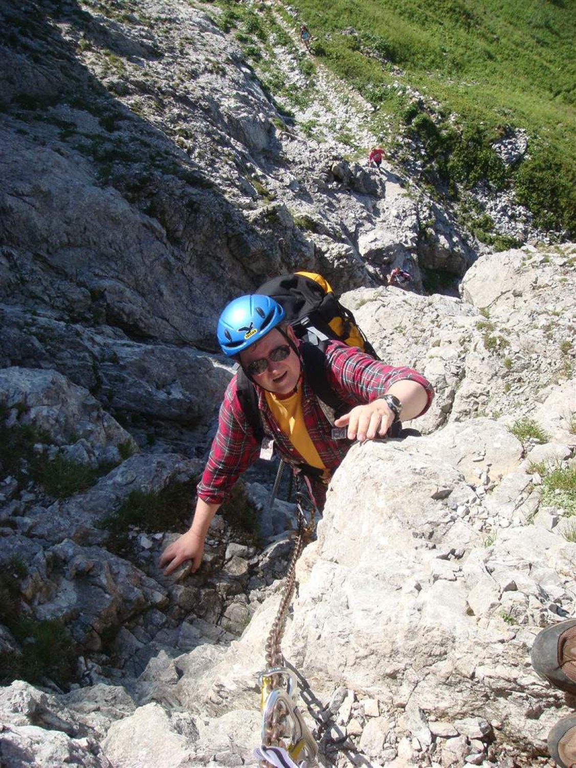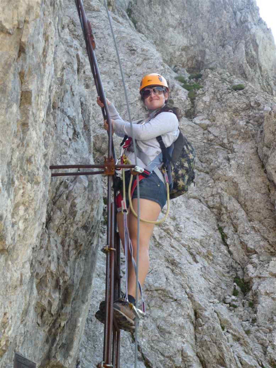 Normale Klettersteigausrüstung. Für den Abstieg festes Schuhwerk hilfreich