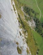 Die Route läuft neben 4-5 anderen Routen über den Wandbereich des Südturms, der deutlich weniger besucht wird als der Sandührlisektor. Der Fels ist sehr rau und relativ steil (viele kurze athletische Stellen an Schlitzen, unterbrochen von 1-2 plattigen Schritten). Die Route wurde 1987 eröffnet und ist entsprechend streng bewertet. Durch eine spätere Sanierung ist das Bh Material in gutem Zustand. An den Ständen gibt es zwei Fixpunkte zum Abseilen (übereinander; nicht miteinander verbunden). In der ‚eigentlichen Route‘ ist der erste Zwischenhaken weniger als 2 m von Stand entfernt. Danach werden die Abstände größer. Die Kletterei ist schön und interessant (wenn man sich nicht an der Botanik stört). Jede Seillänge bietet etwas Besonderes. Langweilig wird es sicher nicht. Idealerweise schliessen sich an die ersten 3 SL, noch die 2 SL von Katerbummel an. Da wartet am Schluss noch ein wirklich tolles Finale. Damit ergibt sich eine logische und gerade 5 SL-Route (Fairness den Erstbegehern: historisch gesehen war Katerbummel früher da: als Variante zur Plattenwand, die Martin Wiesmann am 1. Januar (!) 1984 da reinlegte).