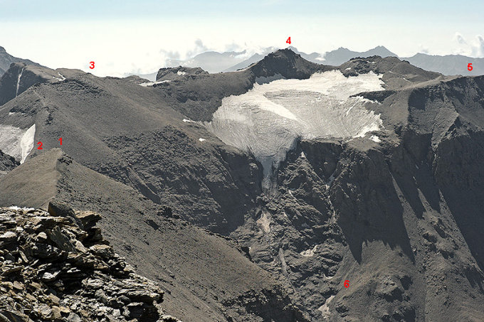 Über den ebenfalls aus Schutt bestehenden Nordgrat erreicht man das leicht besteigbare Felsköpfchen der Pointe du Lamet.