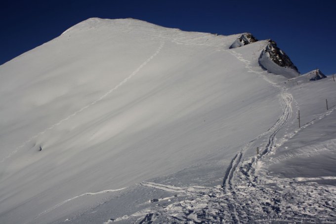 Von der 2330m hoch gelegenen Bergstation des Lavoz-Sesselliftes über den Südgrat auf den Gipfel.