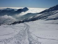 Abfahrt: Bei sehr sicheren Verhältnissen direkt vom Gipfel bzw. Rif. Brioschi über die steilen SE-Hänge (ca. 40°, S) hinunter in die Foppa del Gèr (Achtung, Felsriegel) und unter Pialeral auf die Aufstiegsroute zurück.