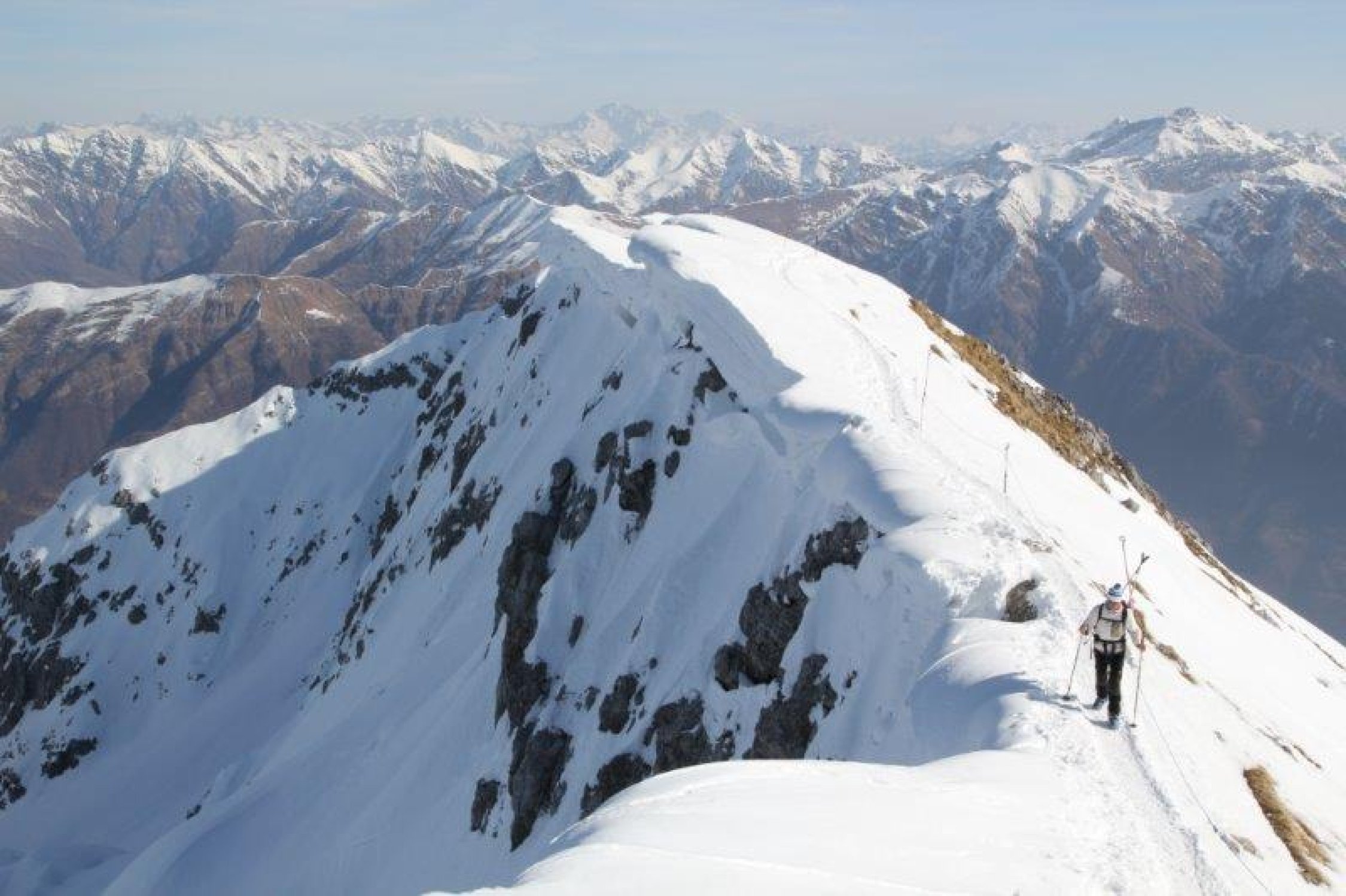 Aufstieg: Freie Routenwahl je nach Schneelage auf Strasse / über Weiden zum Rif. Antonietta, Pialeral (1420 m). Weiter zu den Baite Comolli (Biv. Riva-Girani); hier steilt sich der Hang auf, zu Fuss den Stangen entlang gerade zum Grat, auf diesem zum Gipfel und Rif. Brioschi.
