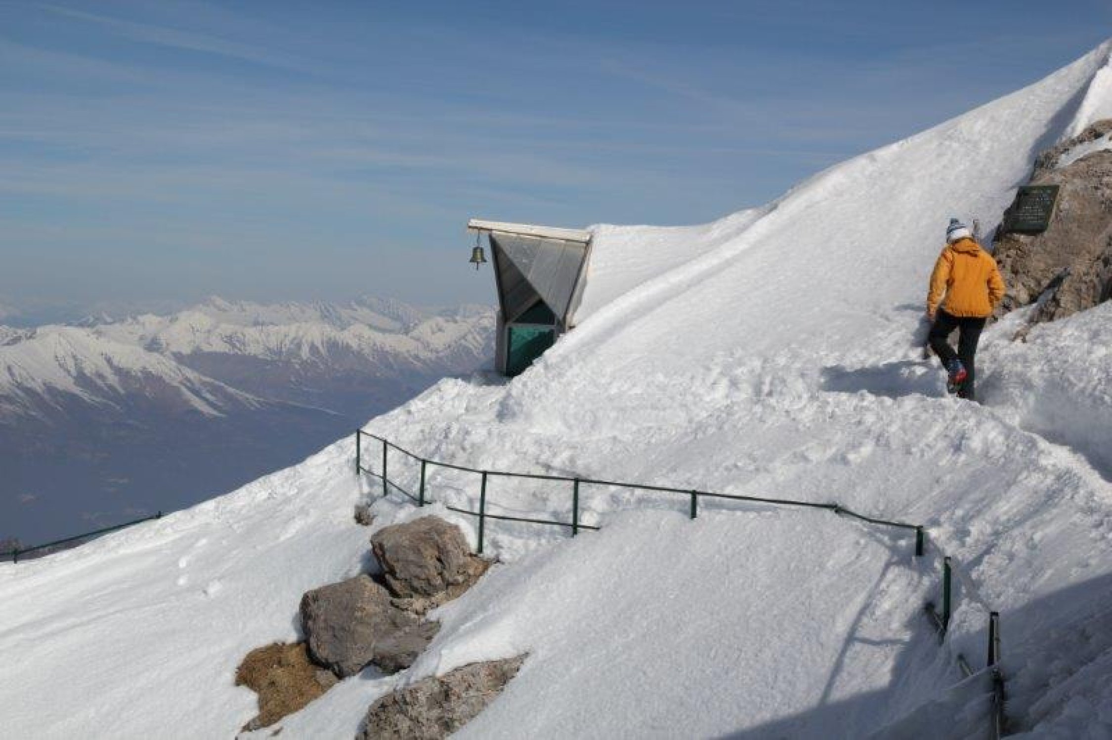 Skitourenausrüstung, Seil, Pickel und Steigeisen je nach Verhältnissen