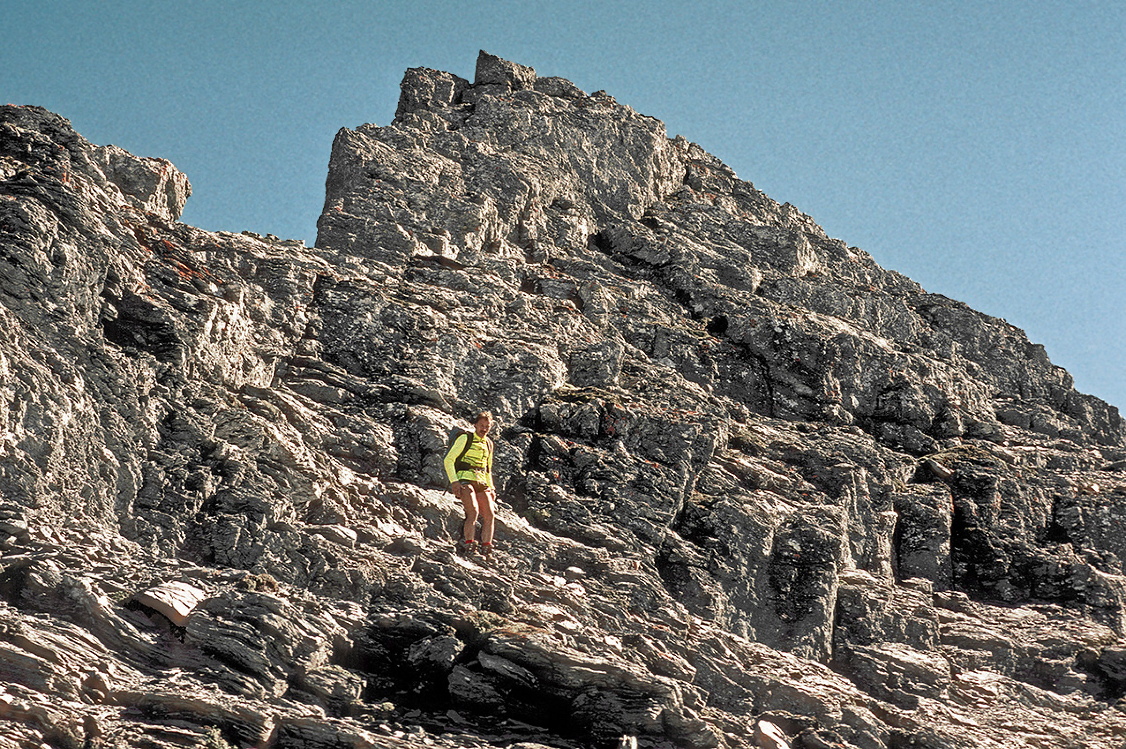 Schwierigkeit: T5, weglos, brüchige Schrofen, leichte Kletterei.