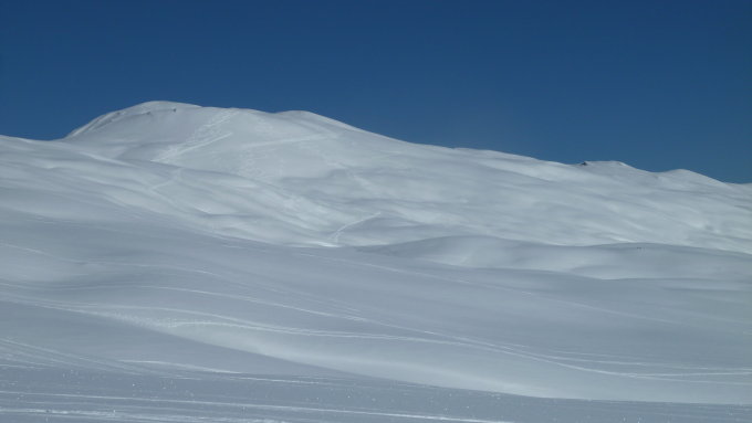 Beim Reservoir (Acla) vorbei via Punkt 1720 Richtung Alp Dros. Dort rechts haltend über Punkt 2019, westlich vom kleinen See vorbei über die wenig steilen Hänge von Pardatsch auf den Gipfel.