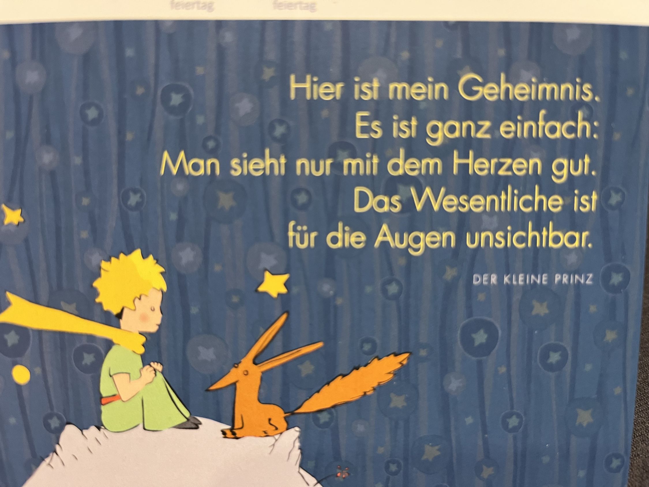 den Prinzen, der von meinem Planeten stammt und nicht unendlich weit weg von mir ist.