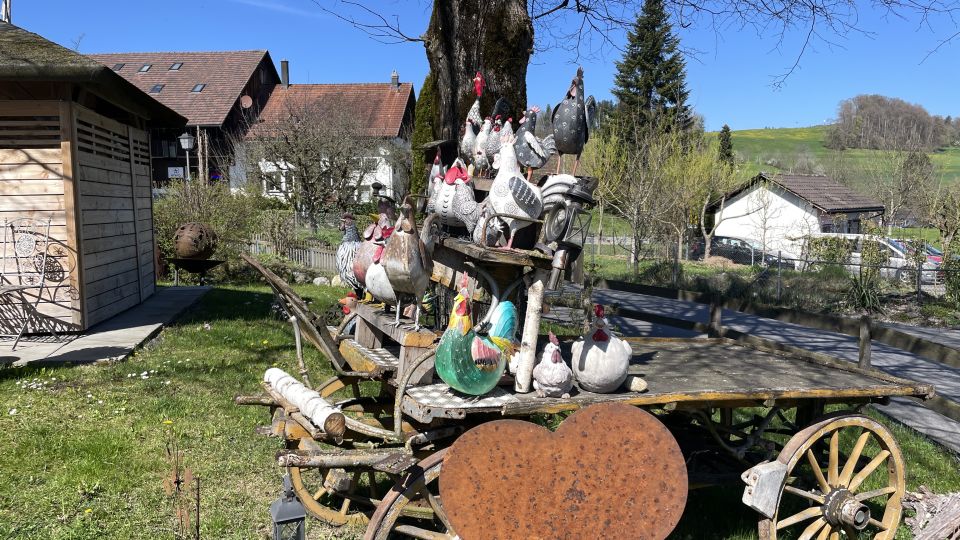 Zum zVieri auf dem Bio-Bauernhof, des Bauern Hühner gackern zufrieden, zwei Äpfel und aus dem Velokörbli ein Darwida und das Gefühl - mir gehts so gut - zufrieden und in Ruhe zum Geniessen und Beobachten unterwegs zu sein.