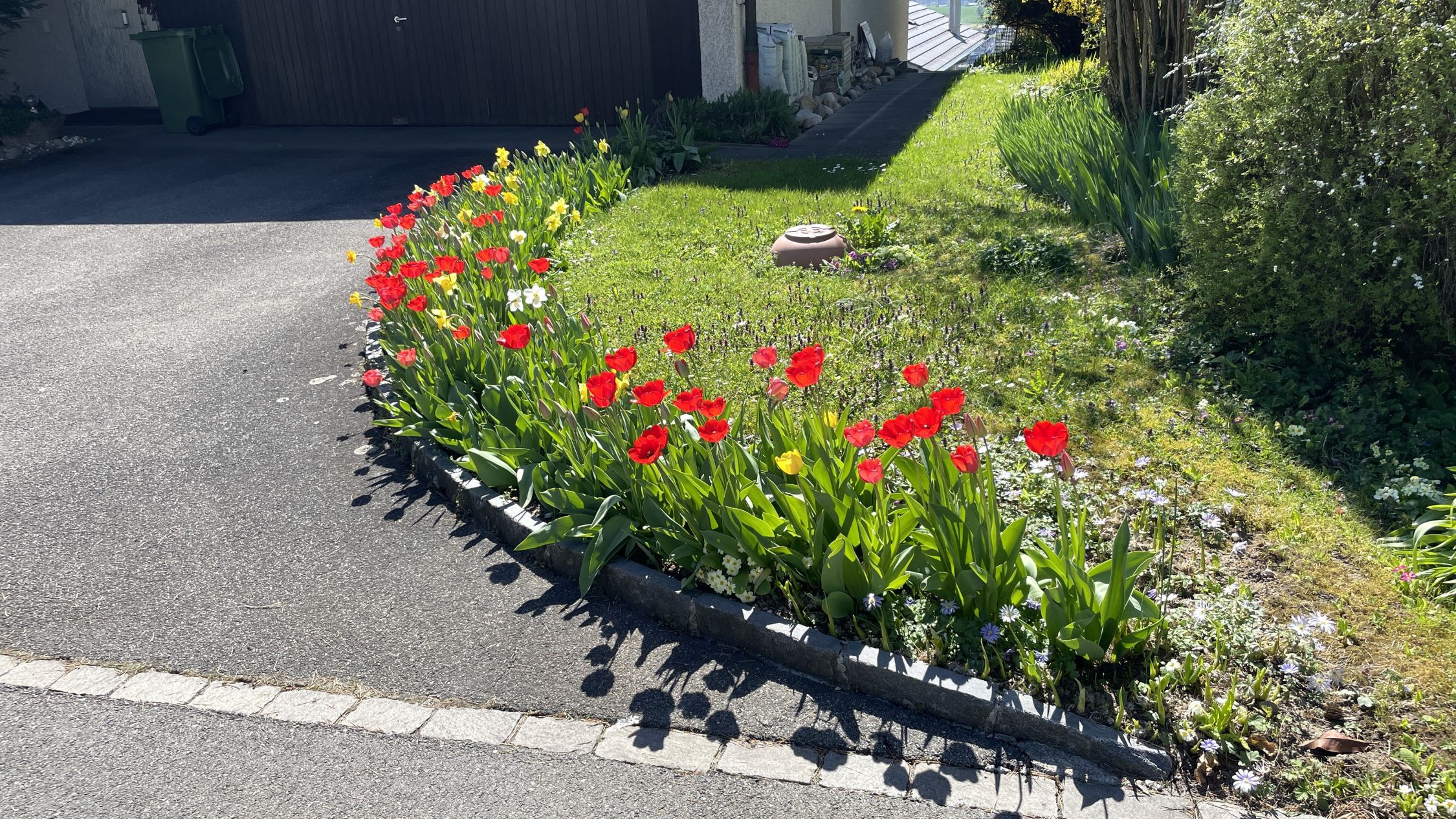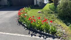 Vorbei an den ersten Wildblumen welche emsig von fleissigen Bienen besucht werden - meine Honiglieferantrn -, vorbei an kleinen Bachwasserfällen, an bunten Tulpen und anderen Zuchtblumen.