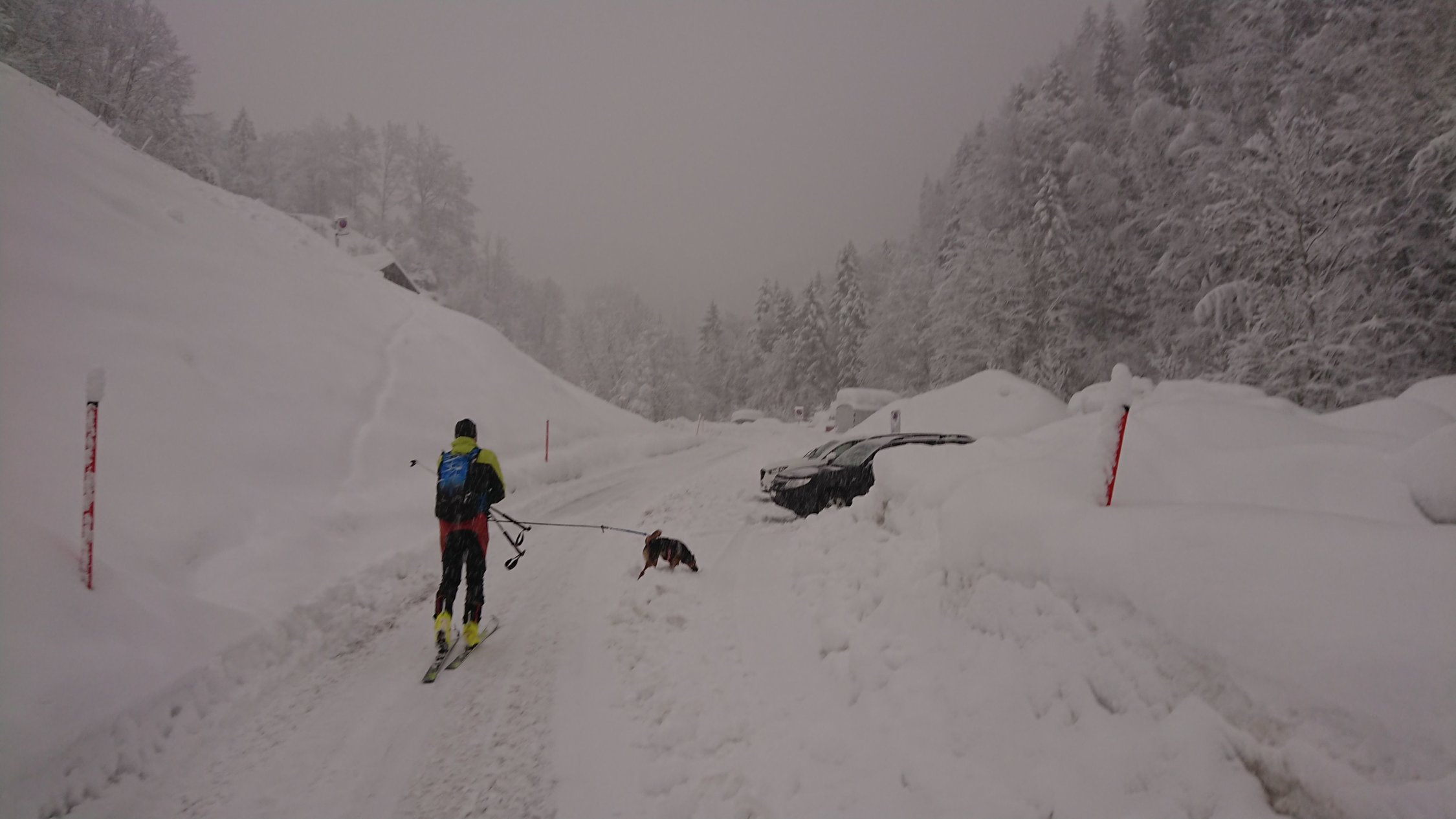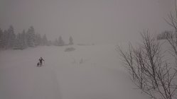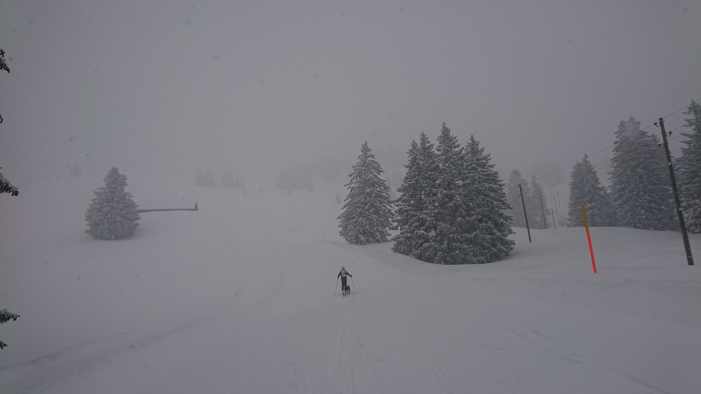 Musste mich heute schon aufraffen um bei diesem Wetter auf Tour zu gehen. Illgau ist prächtig eingeschneit mit ca. 20-40cm Neuschnee.Für mich war es eine Première. Wir laufen der Piste entlang hoch,über Riedmatt und Unter Chruthüttli zum Gipfelziel. Das Pistenfahrzeug lässt nicht lange auf sich warten und ebnet ein bisschen den Weg. Der Wind hielt sich in Grenzen, erst oberhalb des Waldes stärker spürbar, vorallem bei den ersten Abfahrts Metern. Ein Gipfelziel mit Restaurant zum Einkehren und Aufwärmen versteht sich. Die Abfahrt war nur auf dem gepisteten Streifen ein Vergnügen mit ca. 20cm Pulver der sehr gut gedreht hat. Sobald neben diesem Streifen, sehr schwerer Pulver zum steckenbleiben. Ja der Schnee ist auf dieser Höhe recht durchnässt..