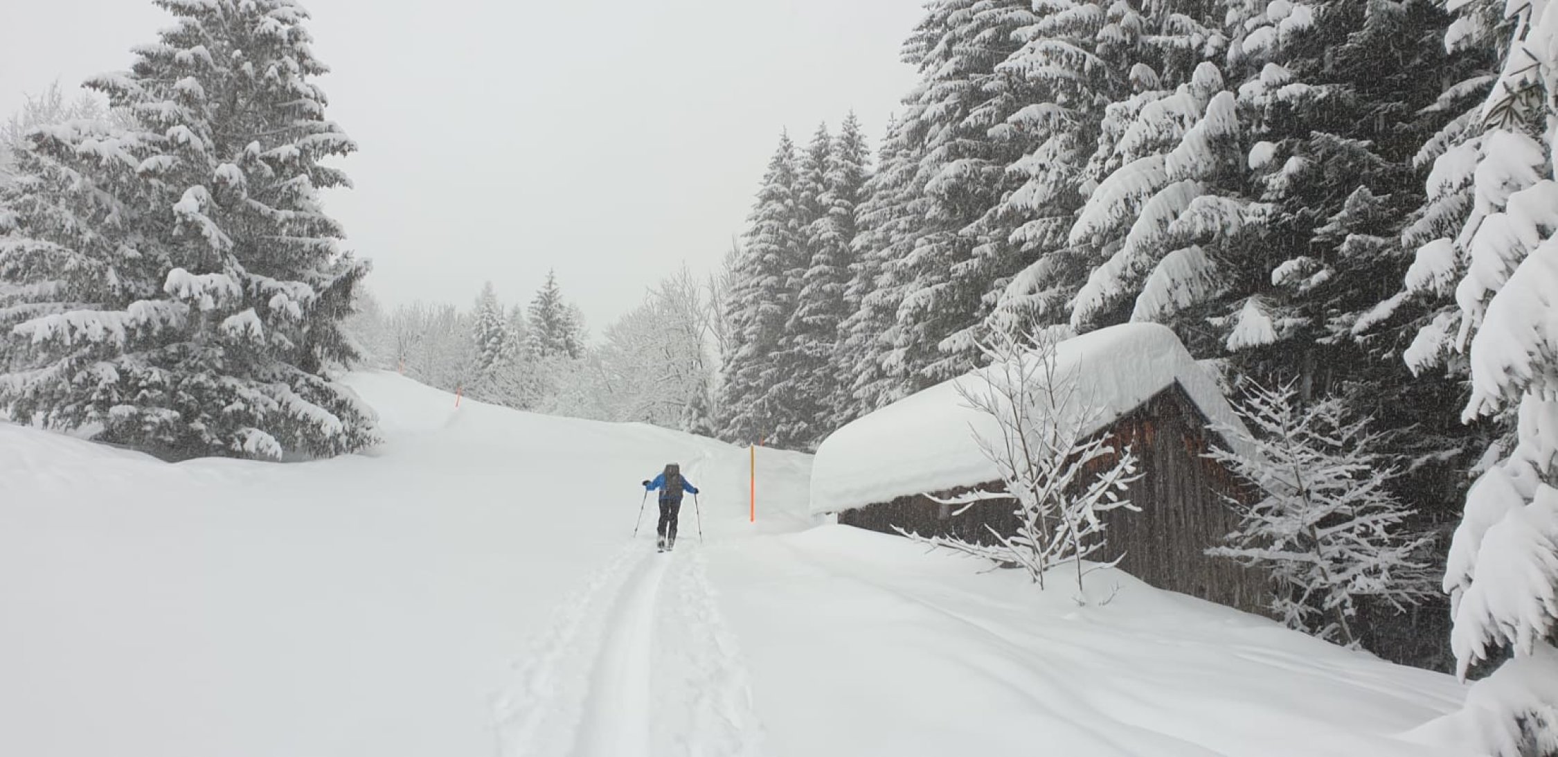 Eine gute Schlechtwetter Tour mit sicheren Verhältnis auf der gewählten Route. Alle anderen Routen sind vorsichtig zu beurteilen. An Tagen wie heute ist es gut Routen zu wählen, die keine unter dem Bereich 30° Hangneigung liegen. Was bei dieser Tour mehrheitlich der Fall ist.