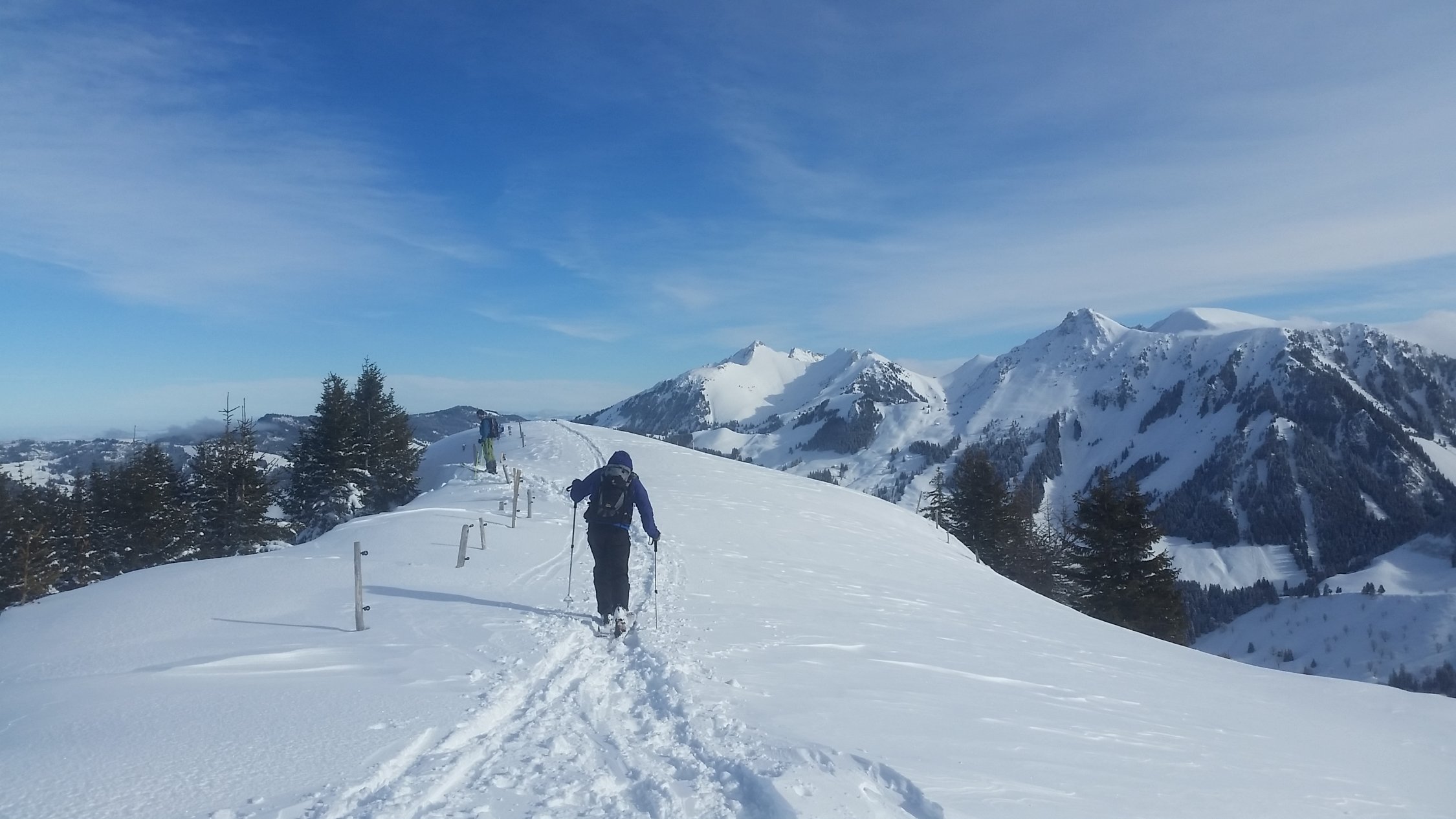 sind freeridmässig unterwegs gewesen.mit lift hoch und abfahrt in salzmatt(neu Wochenende bewirtet).1 aufstieg links weg auf rücken und abfahrt über Waldschneise rechts(einfahrt wächte,steilstück wald gut,weide nach wald super pulver,letzde 200 hm mit regenharstdeckel.2 abfahrt nach halber traverse dito richtung Skigebiet super pulver.3 abfahrt aufstieg gipfel und einfahrt 50m nach gipfel direkt durch die Waldschneise Richtung tal(drop mit wächte,sehr viel schnee,waldschneise suuuper pulver,ausfahrt dito 1 fahrt.lässt sich mit 2 std. karte absolvieren.