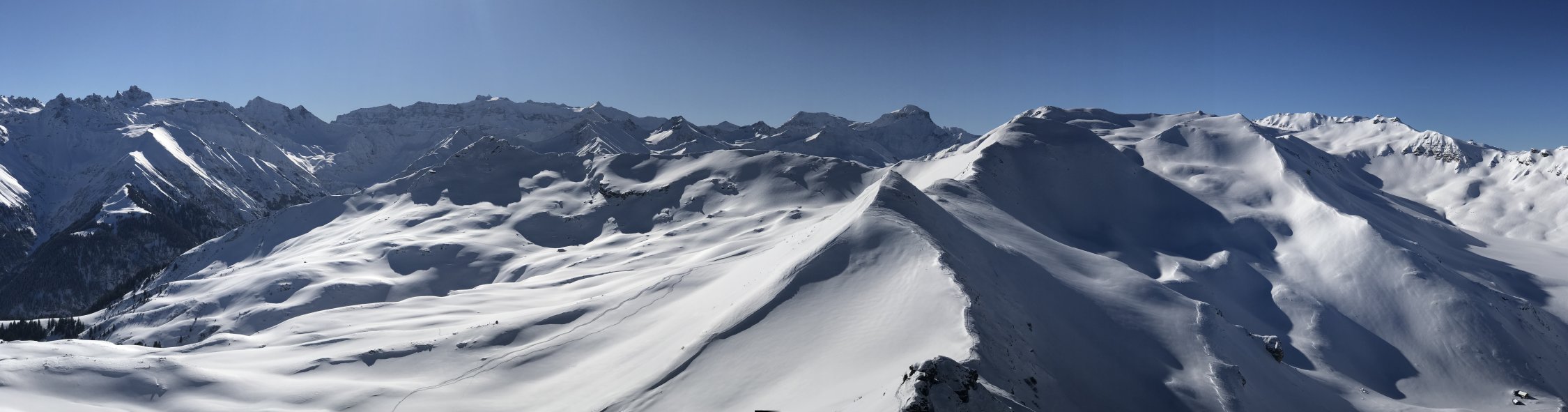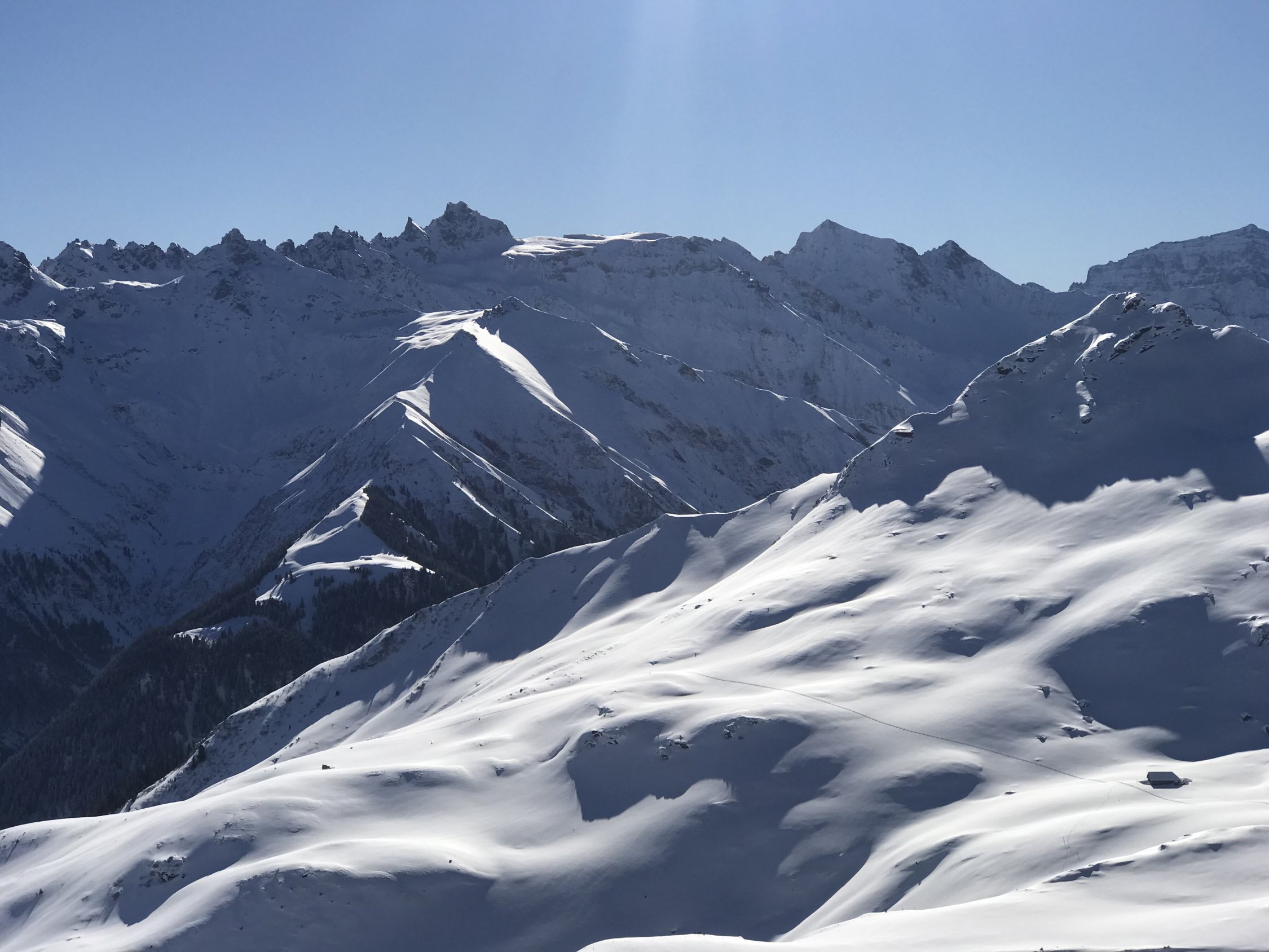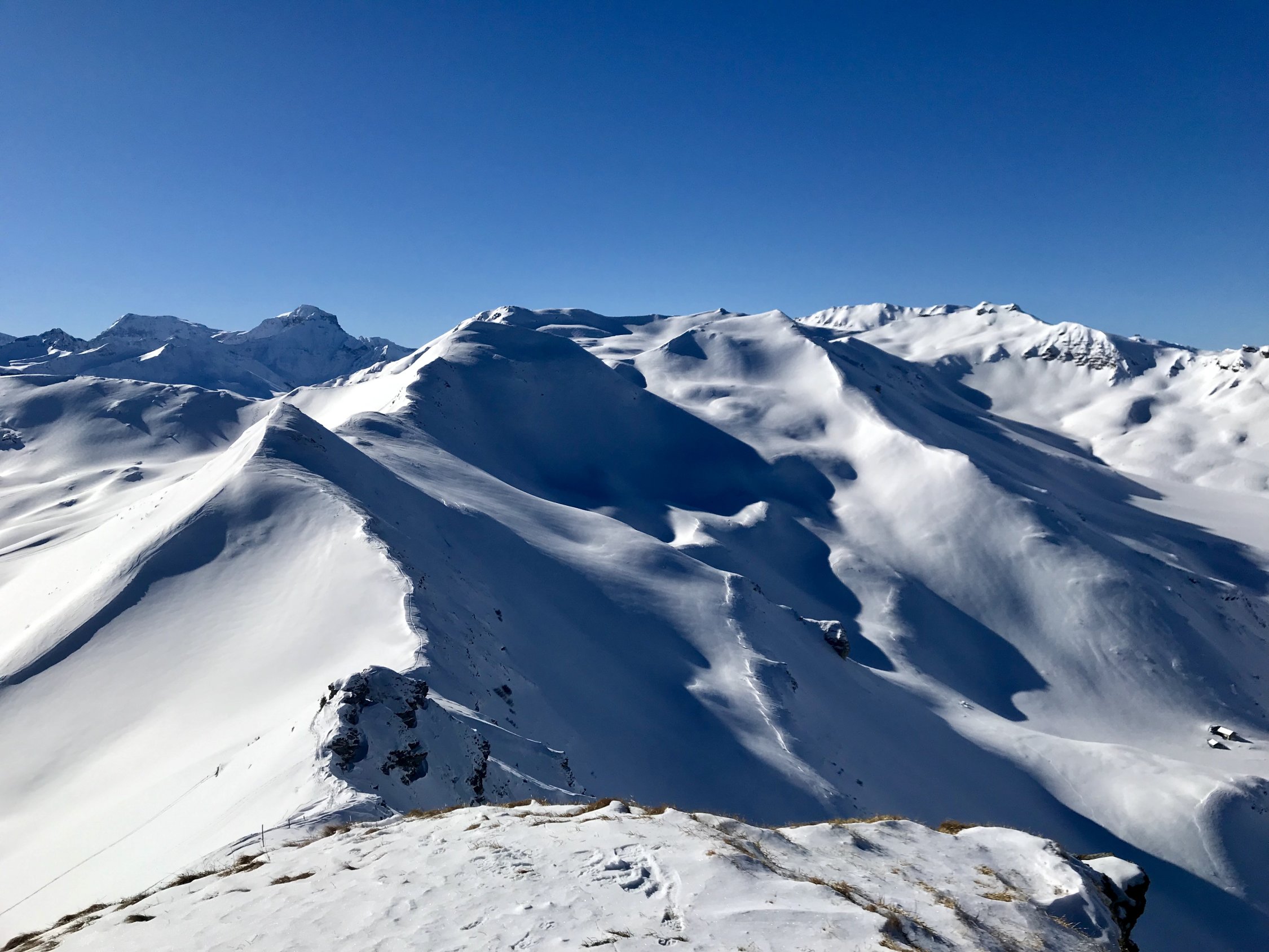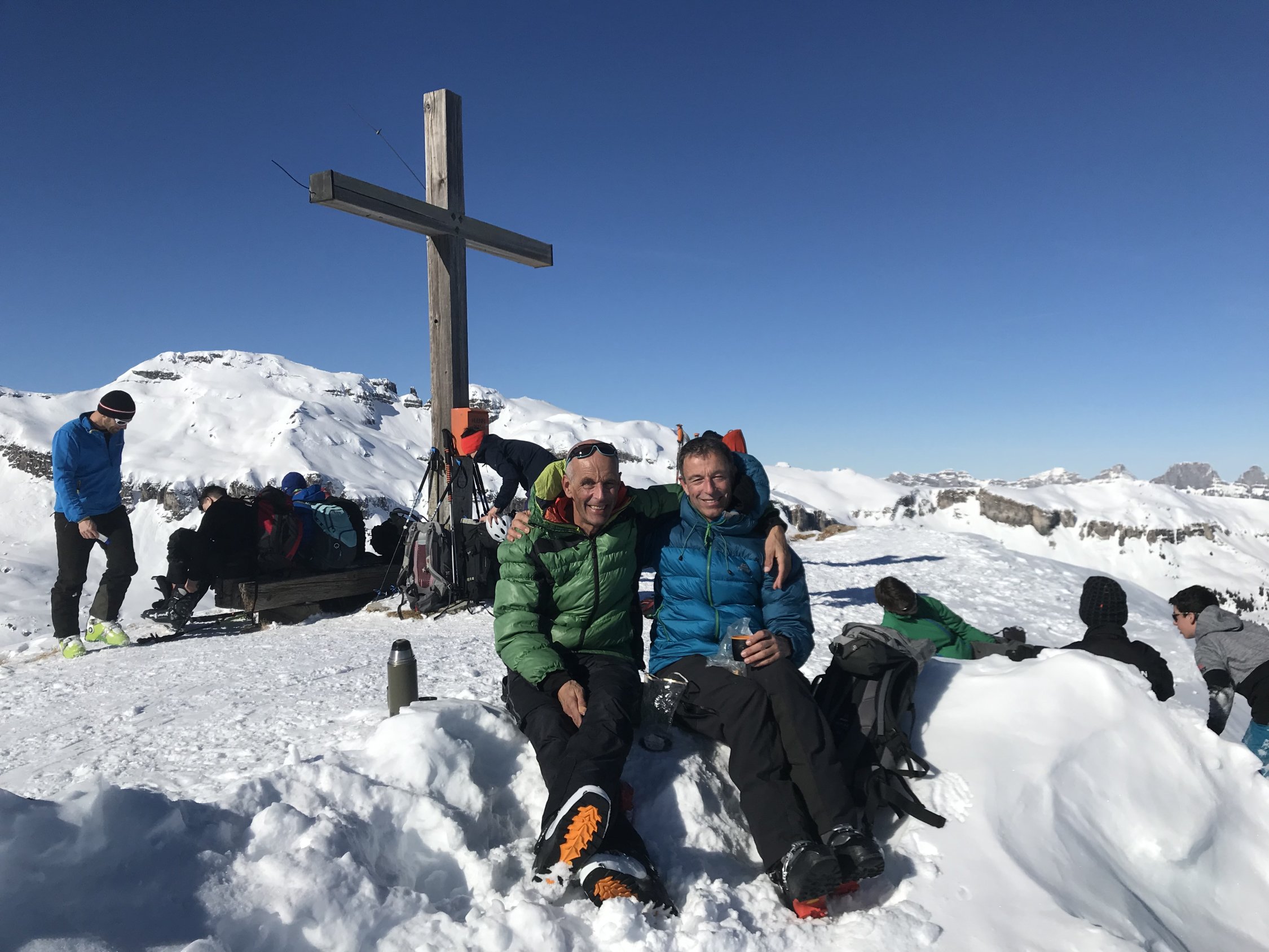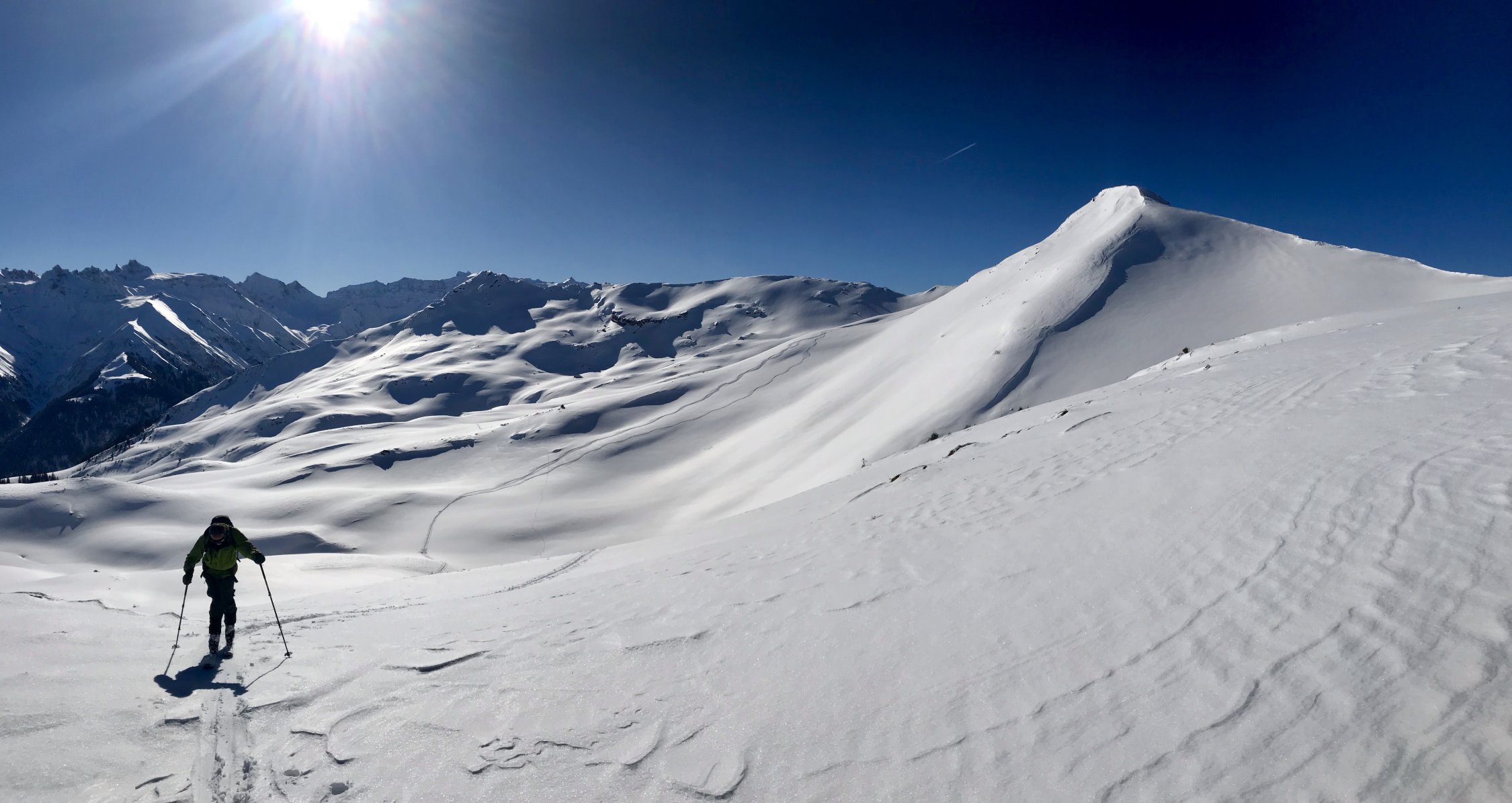 Keine Wolke am Himmel, kein Wind am Gipfel, Pulver vom Kreuz bis zum Auto in Vermol - an so einem Tag macht es nix, dass der Berg nicht gerade zu denen zählt, die Dir den Schlaf rauben, zumal das Panorama bei der feinen Schneelage richtig schön ausfällt! Also: TOP!