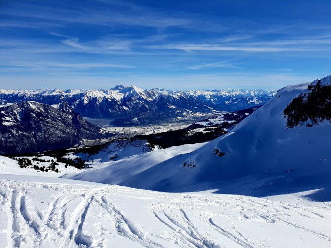 Perfekt, Abfahrt bis ins Tal. Pulver selbst unten noch gut zu fahren.