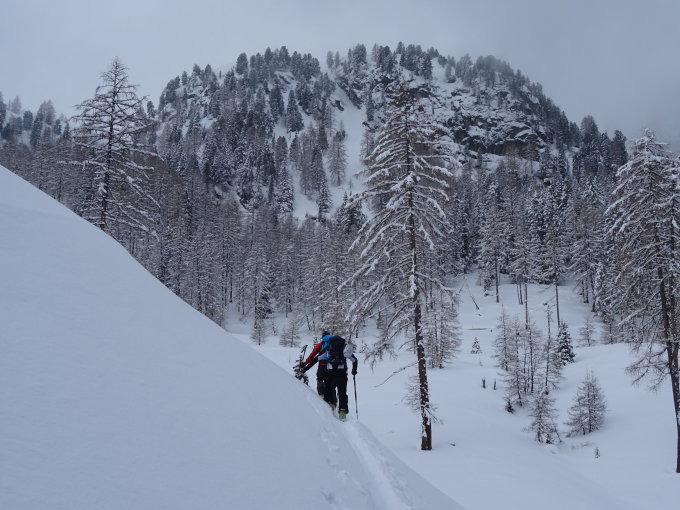 am Morgen noch bewölkt, aber es ist ab Mittag die Sonne rausgekommen; ausreichend Schnee, Lawinentechnisch war der Sonntagkarzinken die beste Wahl, da es schön gestuft und auf relativ flachen Hängen zum Gipfel geht; ab Seekaralm alles selber gespurt und alles noch unverspurt; Abfahrt vom Gipfel war durchgehend bester Pulver;