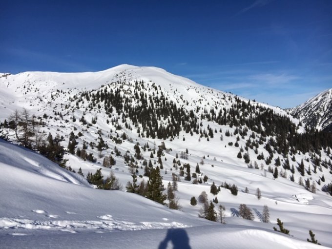 Viel Schnee und wenig Leute im Gebiet. Temperatur beim Start in Malbun -10°, in der Sonne dann bald wärmer - ein herrlicher Wintertag!