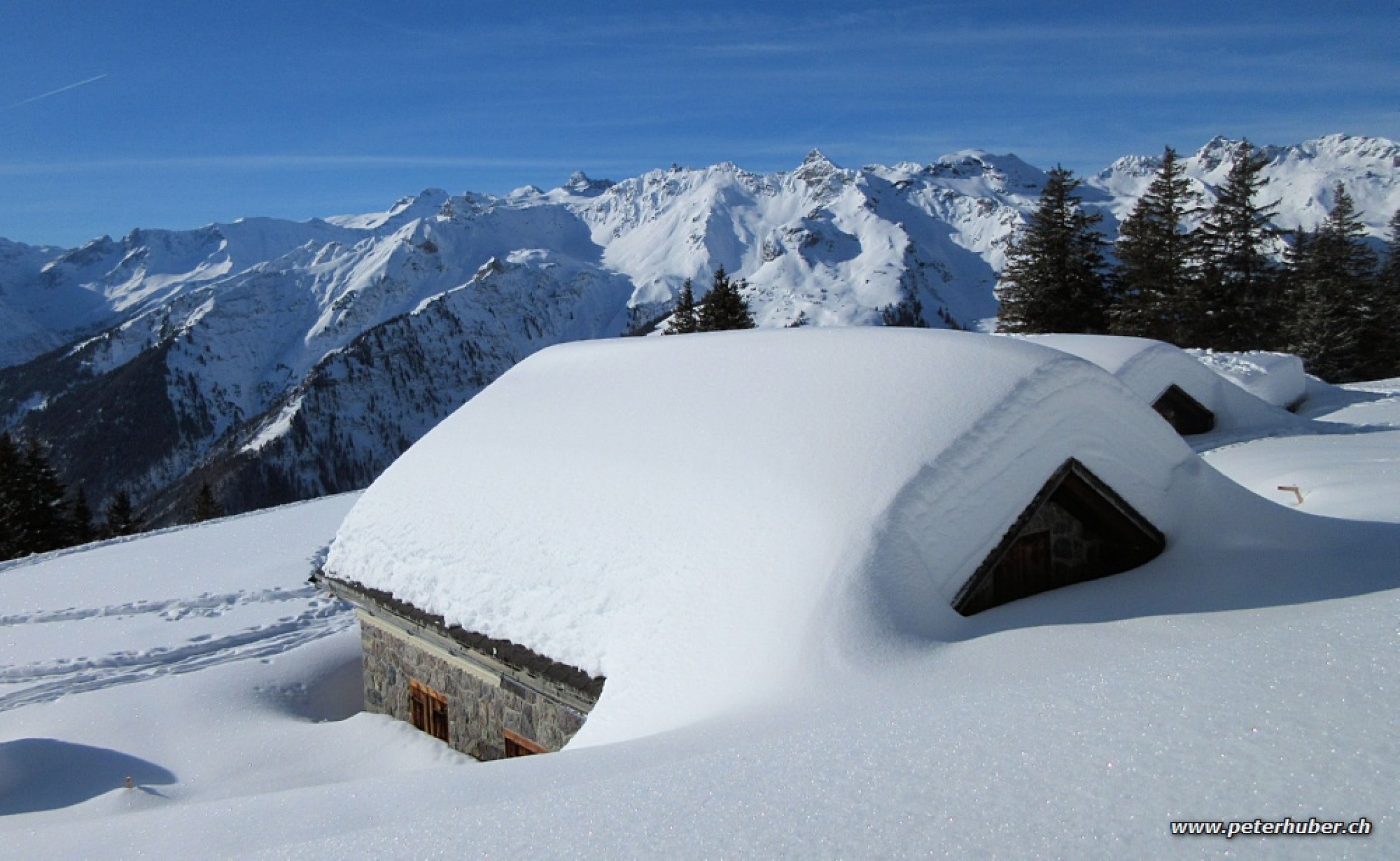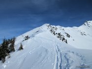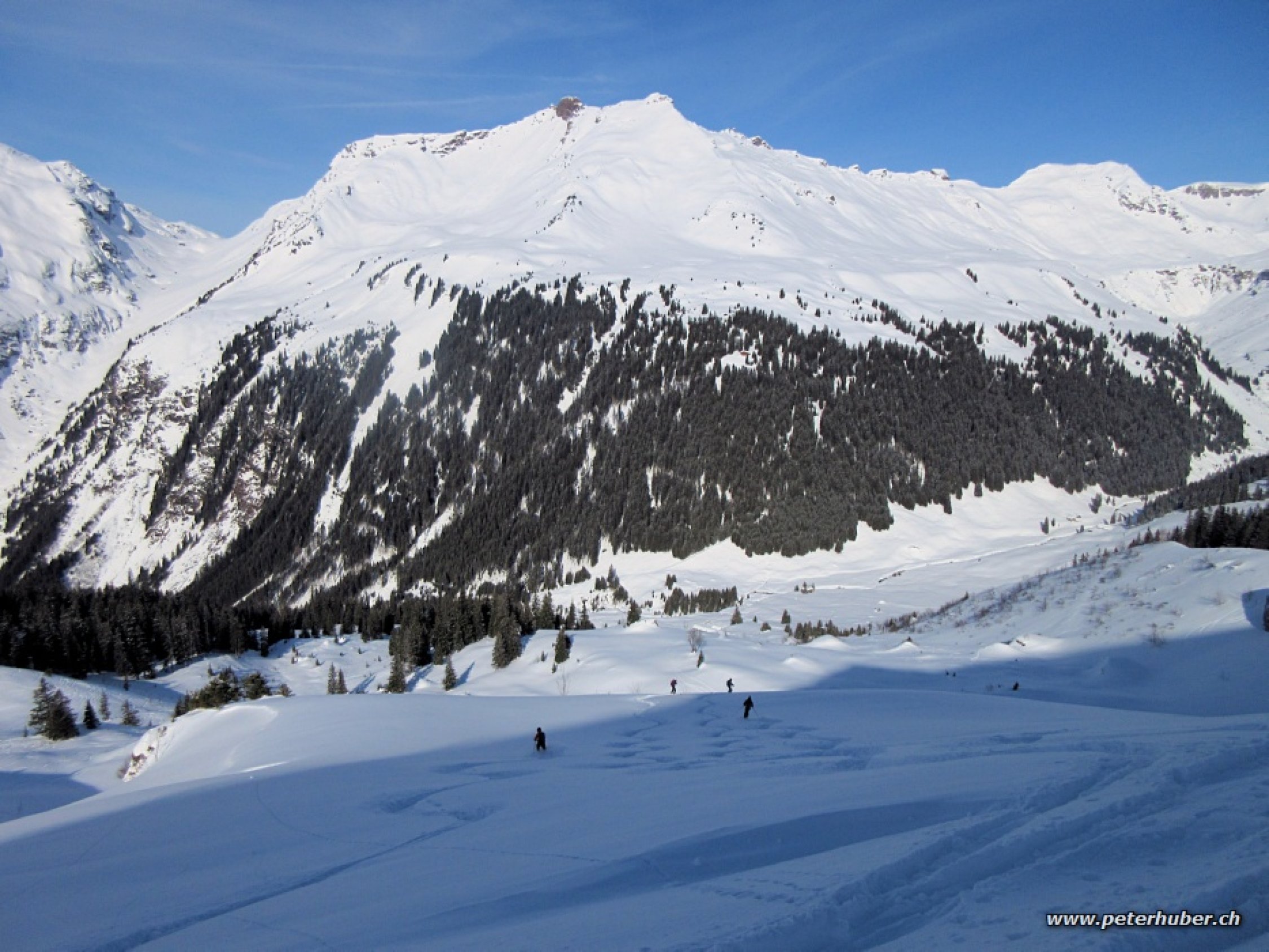 Traumhaft schönes Wetter. Relativ warm und nur schwachwindig. Gute Aufstiegspur über den Südwestrücken bis zum Wintergipfel. Es hat zirka 2 cm Neuschnee gegeben. Der Schnee hat sonnenseitig an steileren Hängen einen Deckel.