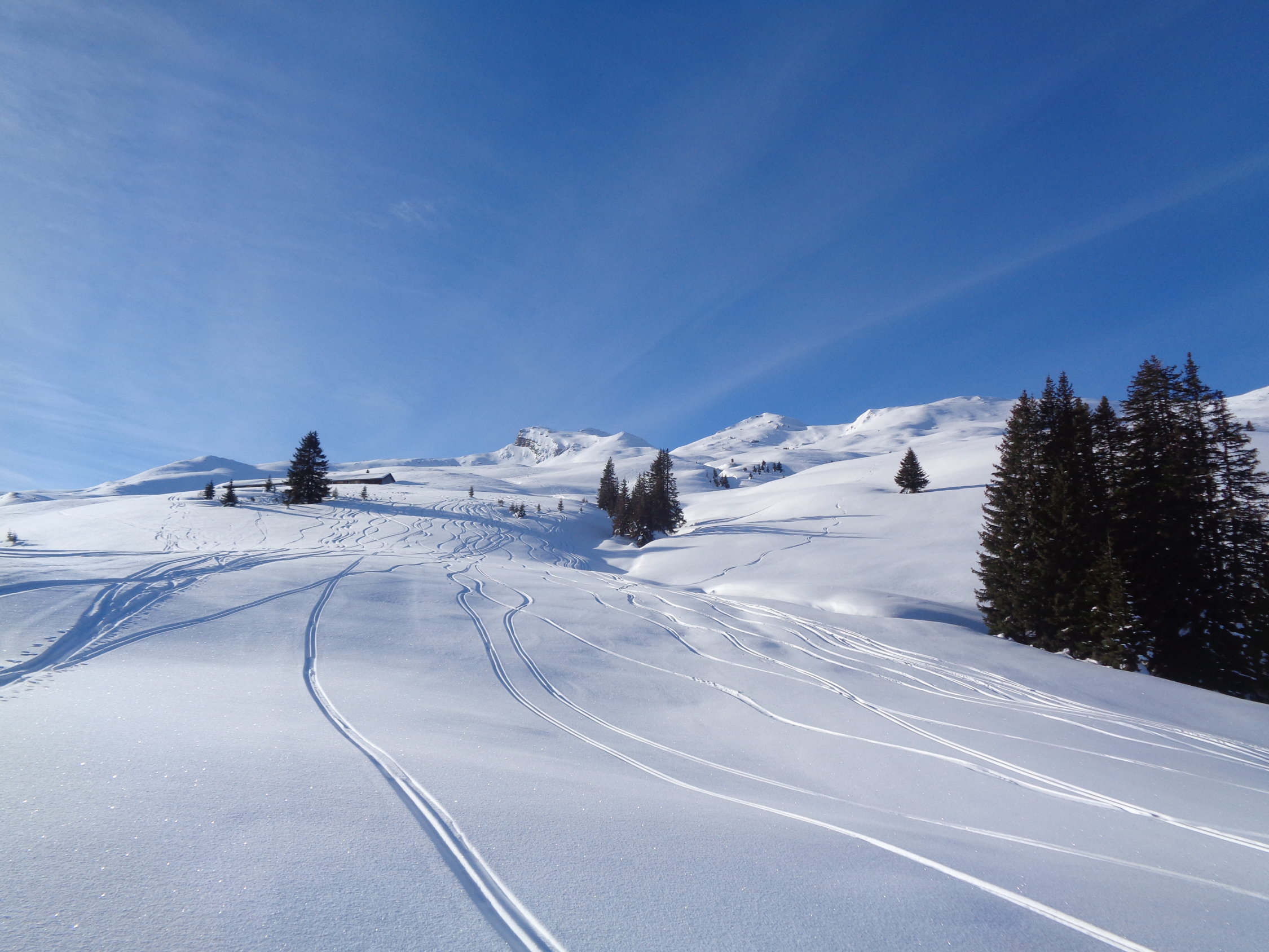 Ab der Alp Dranna alles frischer pulver bis zum Gipfel. Die Waldschneise schon sehr sehr arg zerfahren aber machar.