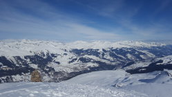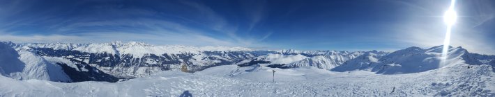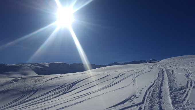 Sehr gute Autobahn-artige Spur bis auf den Gipfel. Die Nordhänge sind stark windverblasen und für die Abfahrt eher wenig lohnend. Die Süd-Ost-seitige Abfahrt Richtung Inneralp mit anschliessender Querung zur Vorderalp dafür mit bestem Pulver und noch viel Platz für eigene Spuren.