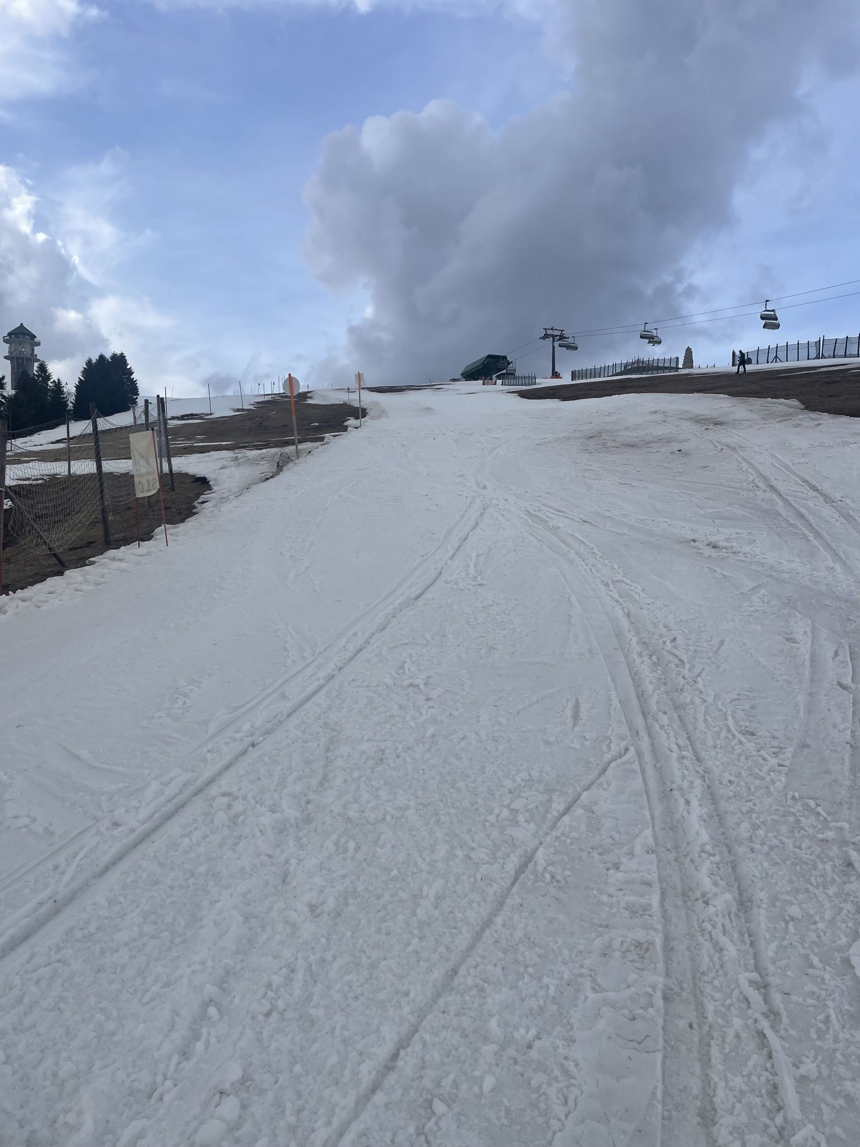 Start beim Hebelhof, dank der Einträge von Scholli und Uwe Klein wusste ich, dass diese Tour noch geht. Aufstieg Seebuck und dann der Latsch rüber zum Feldberg, Abfahrt Hüttenwasen oben gerade noch mit genug Schnee, unten ist exakt beim Hüttenwasen Schnee fertig. Oben sehr gut, ganz unten löchrig verstampft. Wiederaufstieg bei mässigem Wetter, ich dachte, es verschifft mich. Doch es wurde besser und in der Abfahrt im Zastler hatte ich Sonne und ok bis gute Schneeverhältnisse. Dann hintenherum zur Baldenweger, das war leider reine Skitragerei, da war ich überrascht. Aufstieg zum Baldenweger Buck dann mit Schnee, teils knorzig, oben wieder kurz ohne. Rüber zum Seebuck und auf der Kunstschneepiste (was ist da wohl drin, dass der so hält? Hopfen, Malz und Wasser jedenfalls nicht) runter zum Hebelhof.