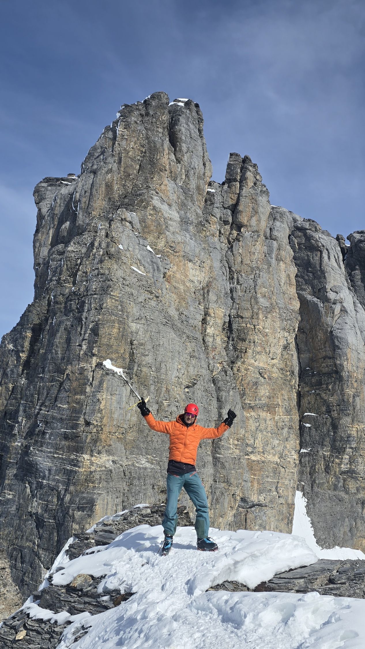 Gipfelcouloir gut gespurt, harter Schnee, keine vereisten Stellen. Steigeisen trotzdem von Vorteil.