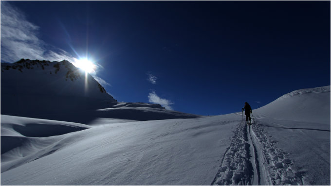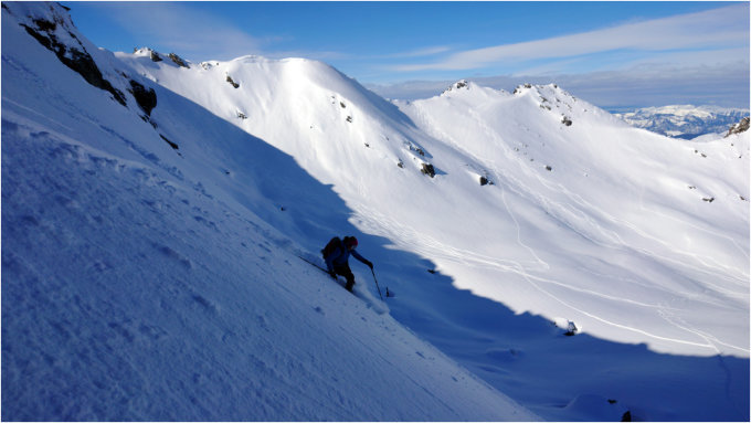 Abfahrt über Nordflanke und Schwebenkar, auch hier beste Verhältnisse.