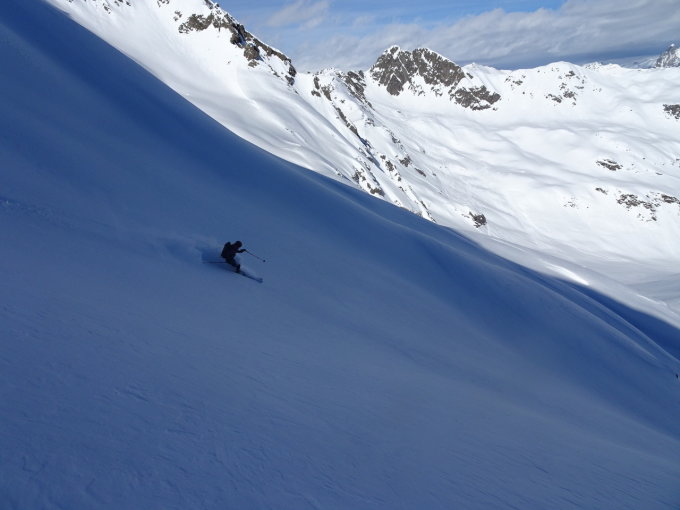 Teilweise tolle Verhältnisse mit gutem lockeren Schnee. Dazwischen jedoch auch Triebschnee Pakete und Harsch.