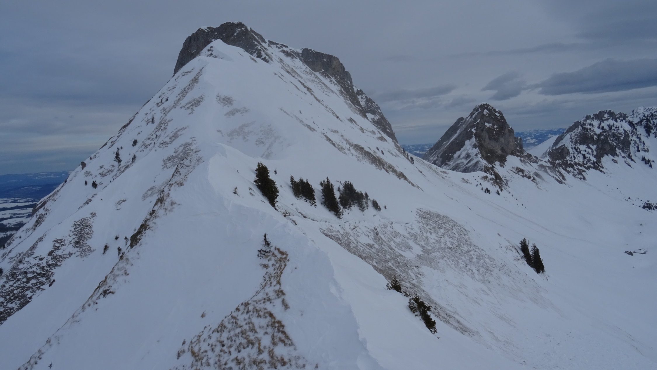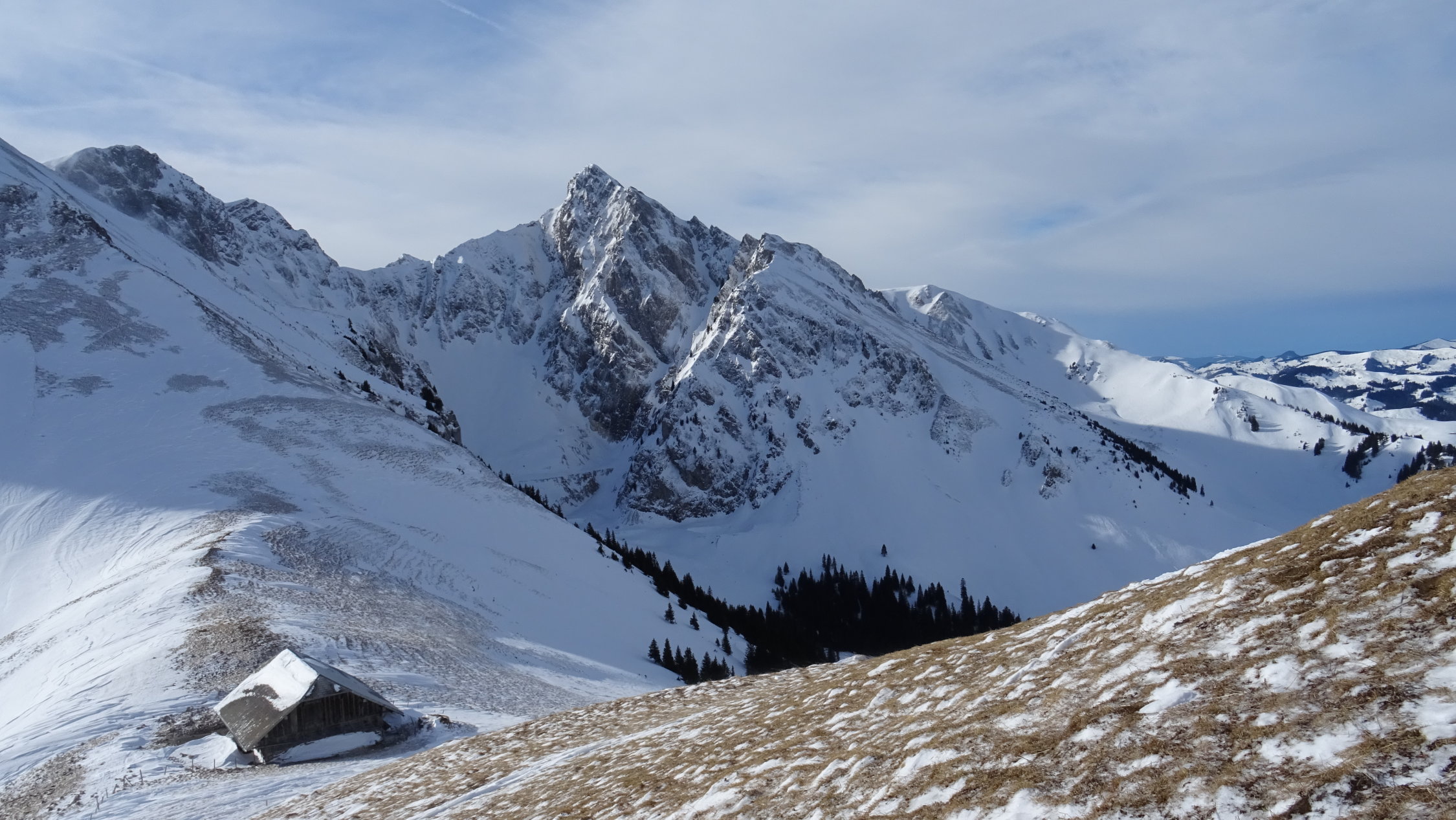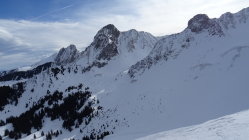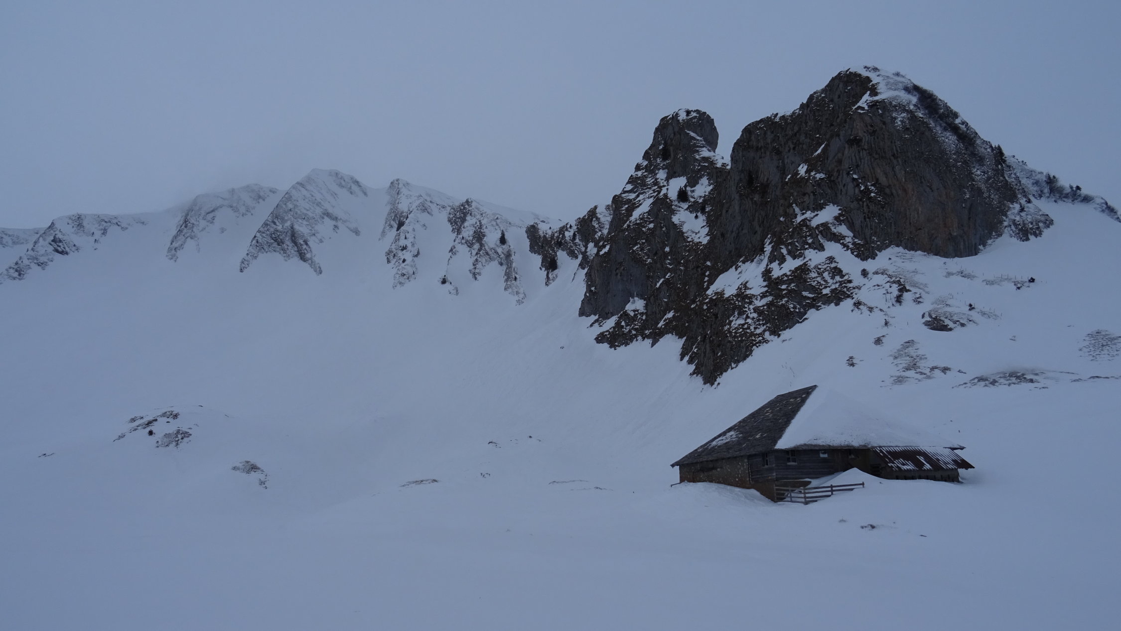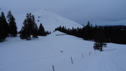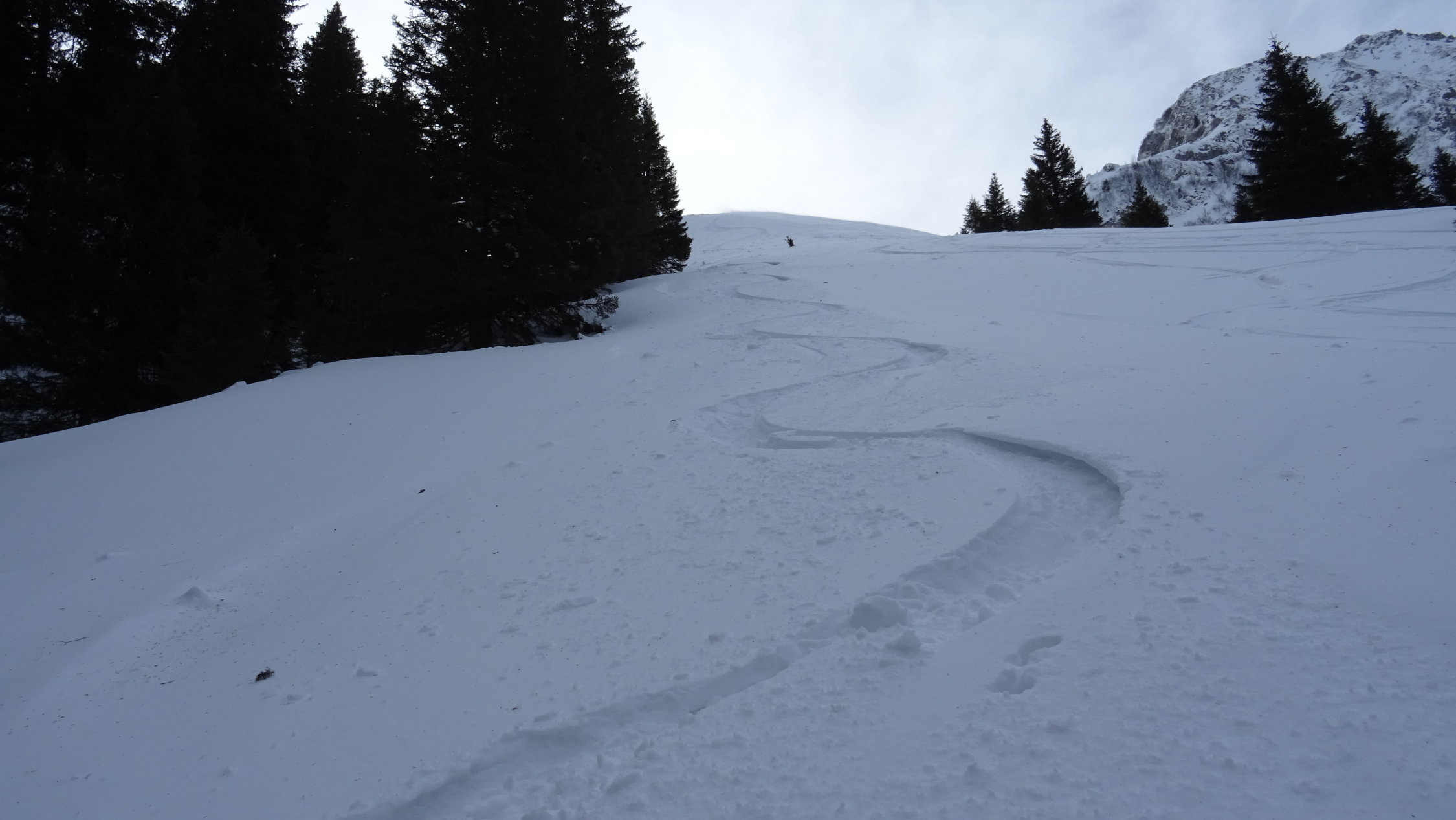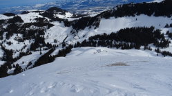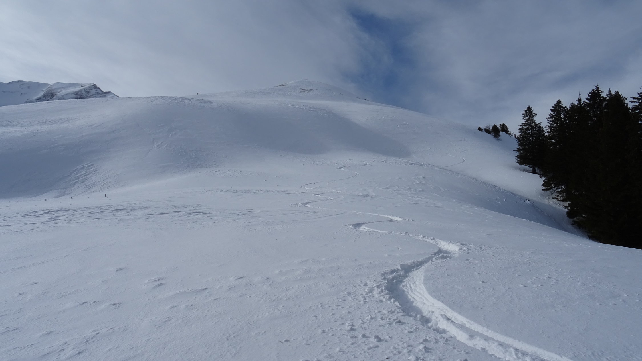 Der Schnee ist mehrheitlich Tragend gedeckelt einzig zum Gantrischsee hinunter fand ich noch ein paar nette Pulverschwünge.