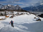 Abfahrt: Oben gab's noch ein paar Pulverhänge, z.T. mit leichtem Deckel. Unterhalb der Alphütte dann zunehmend feuchter Schnee. Von da weg hat es eine Piste bis zum Startpunkt hinunter.