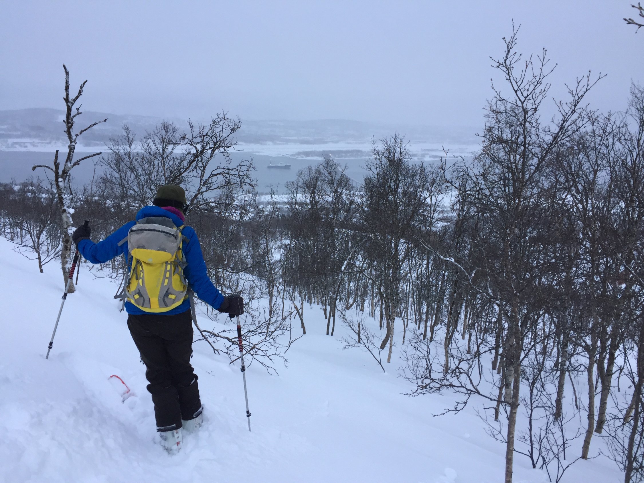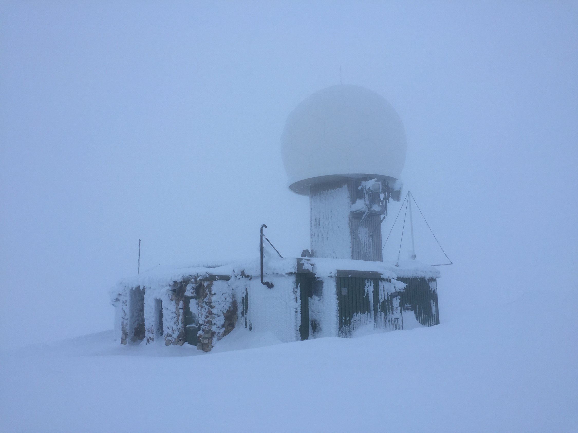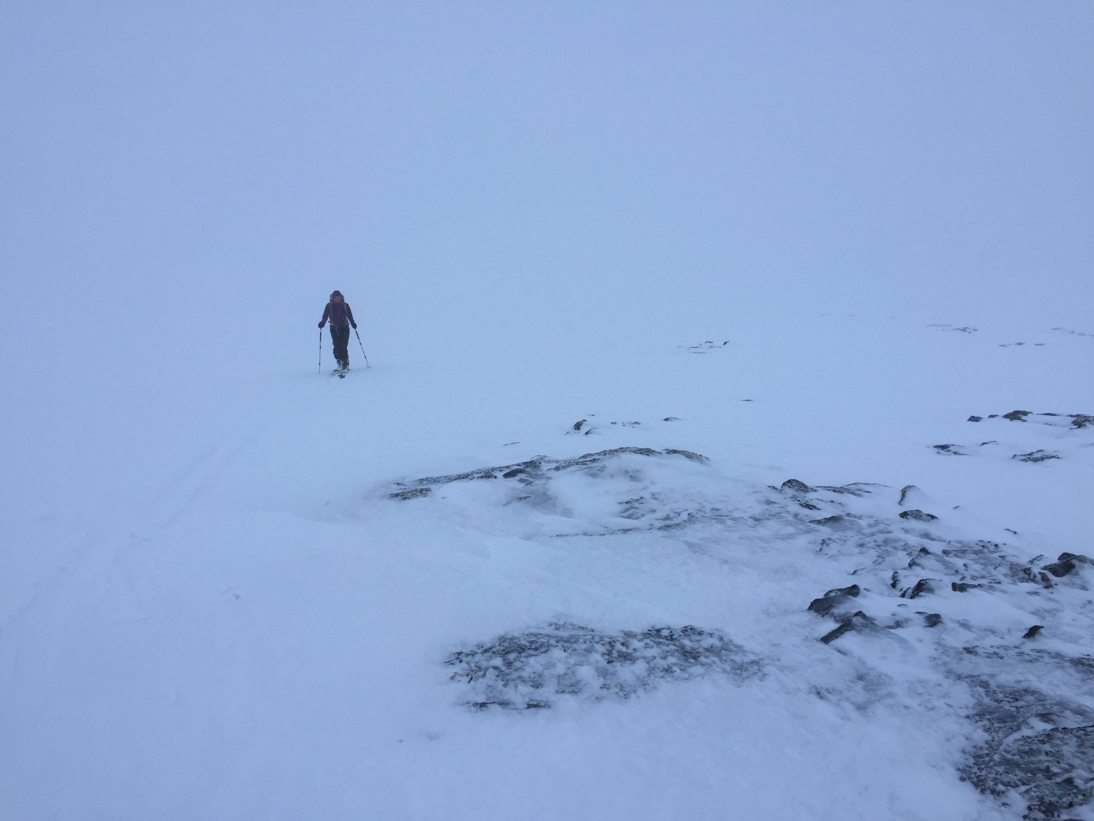 Auf der ganzen Rute üppig Schnee. Die Rücken zum Teil eisig abgeblasen, sonst noch schöner Pulverschnee. Über 450m gab es leider aufgrund von Wolken so gut wie nichts mehr zu sehen . "Machbar" heute nur mit Hilfe des GPS. Der Lichtblick am Gipfel: die geheizte Skihütte.