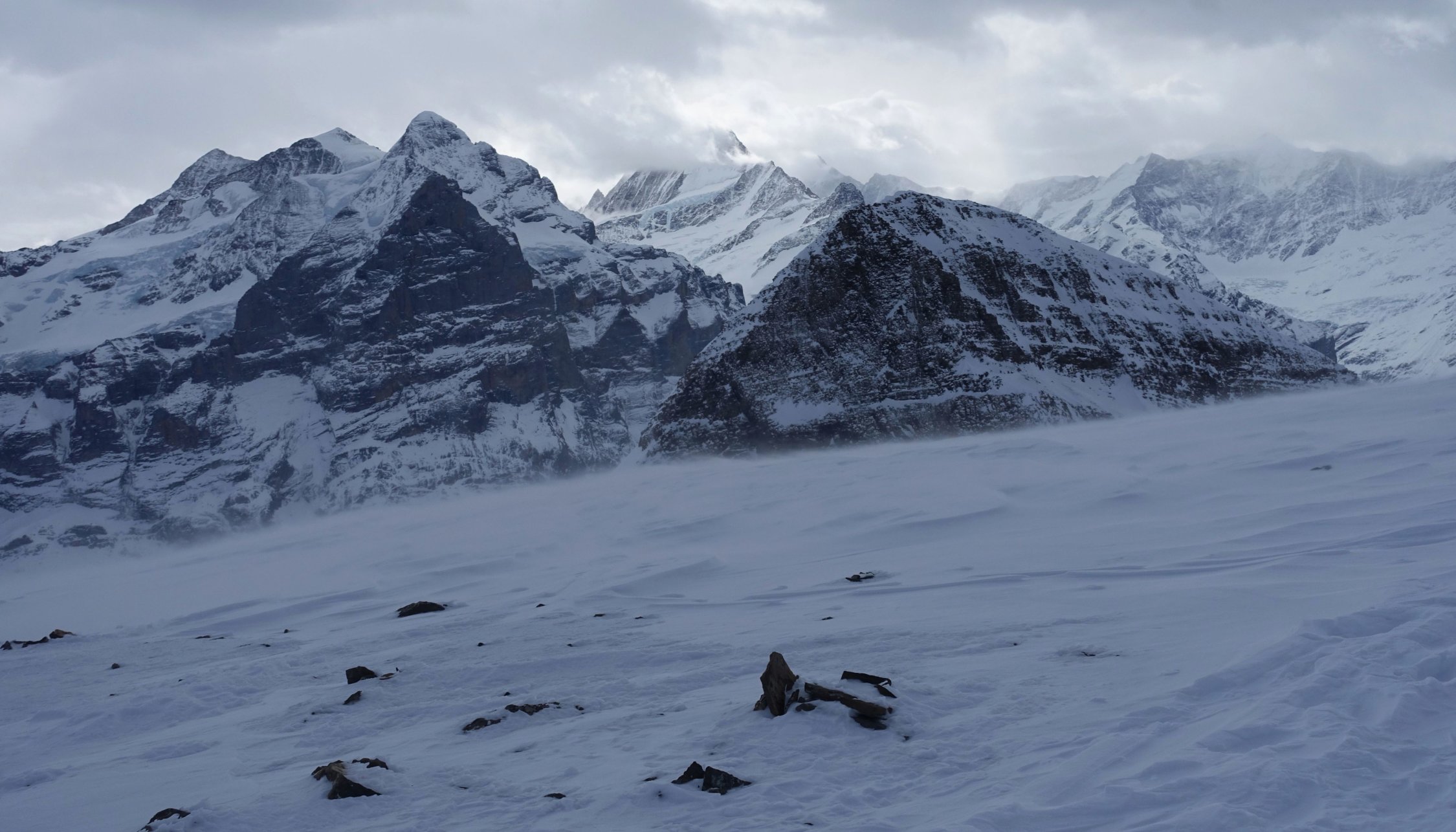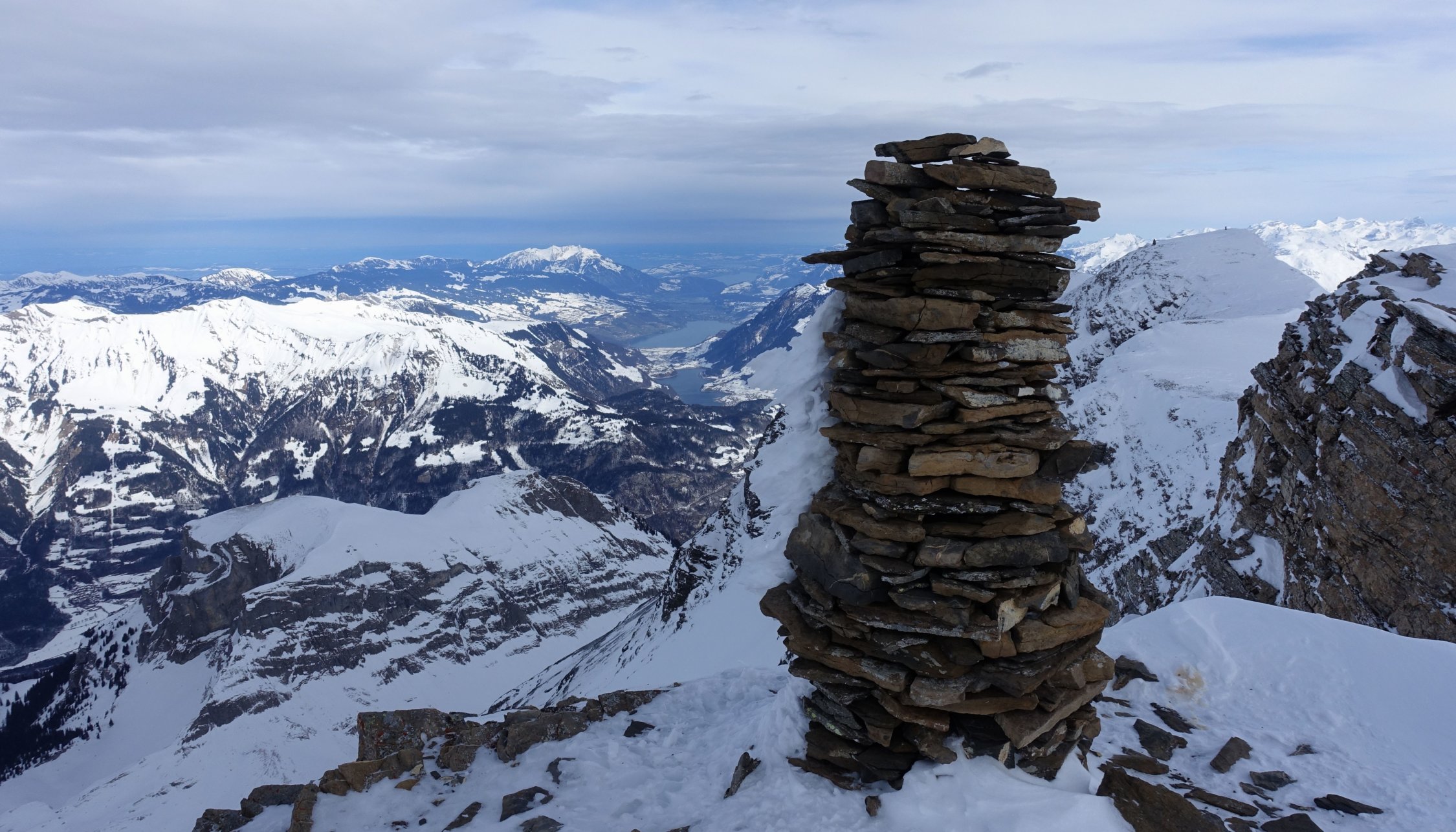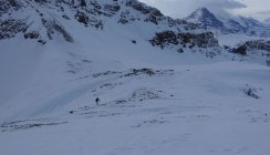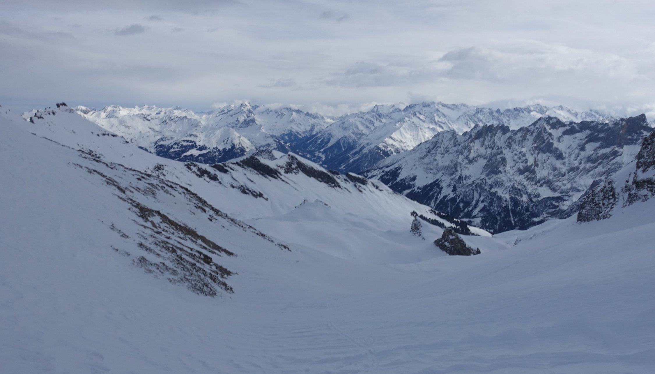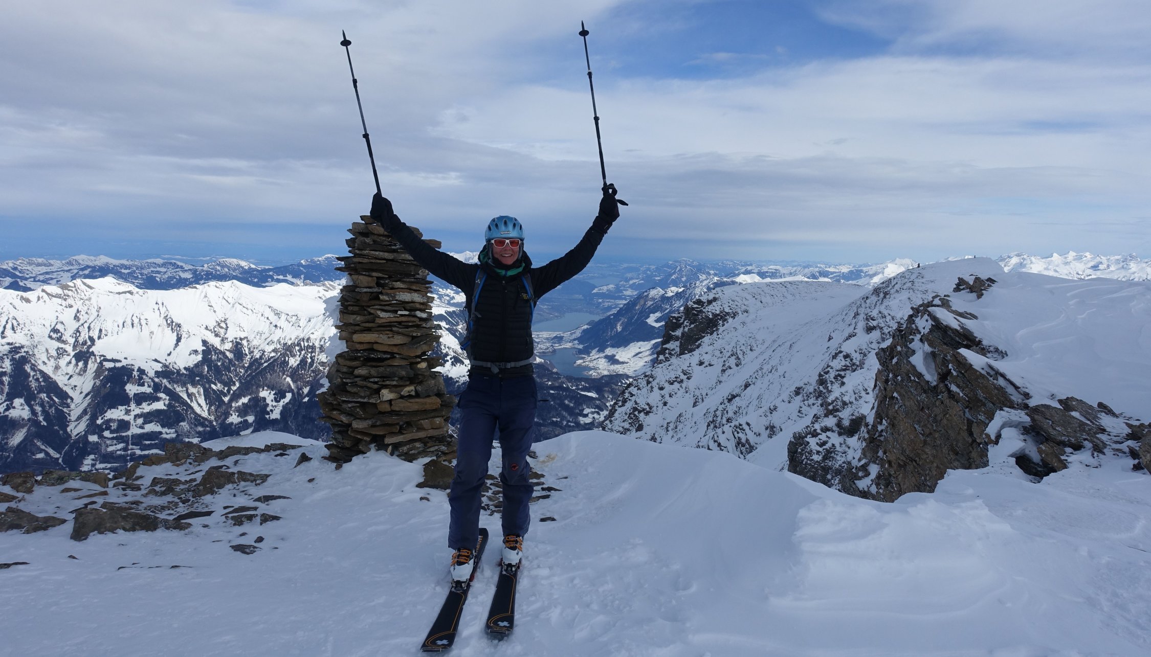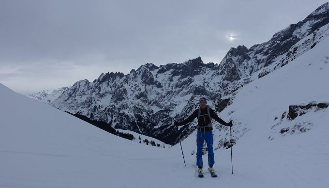 Start um 07:45 an der Brochhütte um noch vor dem Sturm auf dem Gipfel zu sein. Die Sicht war den ganzen Tag sehr eingeschränkt. Bis zum Gipfelgrat war es fast windstill. Dies änderte sich jedoch ab hier drastisch. Es herrschte ein starker stürmischer Wind. Jedoch nicht ganz so stürmisch, dass wir den Gipfel hätten auslassen müssen. Der Gifpelgrat war recht abgeblasen, aber es fand sich ein gangbarer Weg nach oben. Bergab wichen wir dann etwas weiter in die Westflanke aus. Hier hatte es etwas mehr Schnee, schön zu fahren war der stark windbearbeitete Schnee aber trotzdem nicht. Der Rest der Abfahrt ist schnell erklärt. Eine Mischung aus gedeckeltem Triebschnee und Bruchharsch. Eigentlich wollten wir noch auf den Grindelgrat und hatten deshalb das Auto an der Gschwantenmad abgestellt. Aber nach ein paar Aufstiegsmeter war der Ausblick auf weiteren Bruchharsch und noch stärkeren Sturm zu trostlos und wir fellten ab. Um 14:00 waren wir zurück am Auto. Trotzdem war es ein toller Tag in einer beeindruckenden Kulisse. Die Stimmung am Gipfel war gigantisch!
