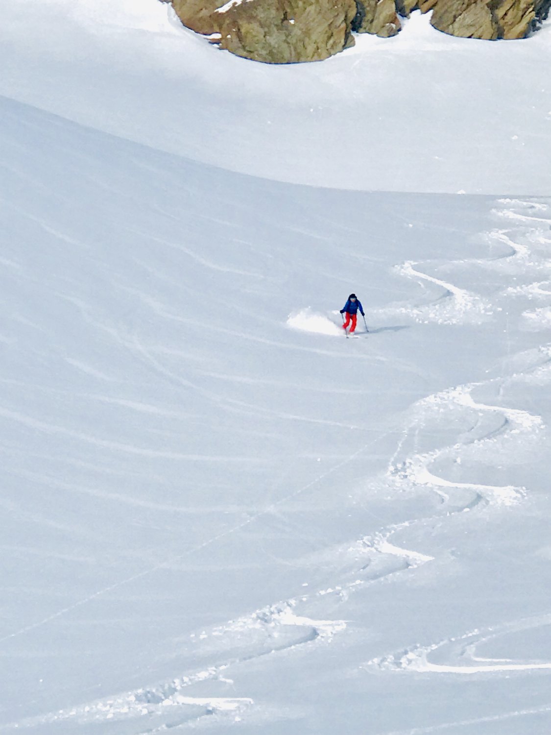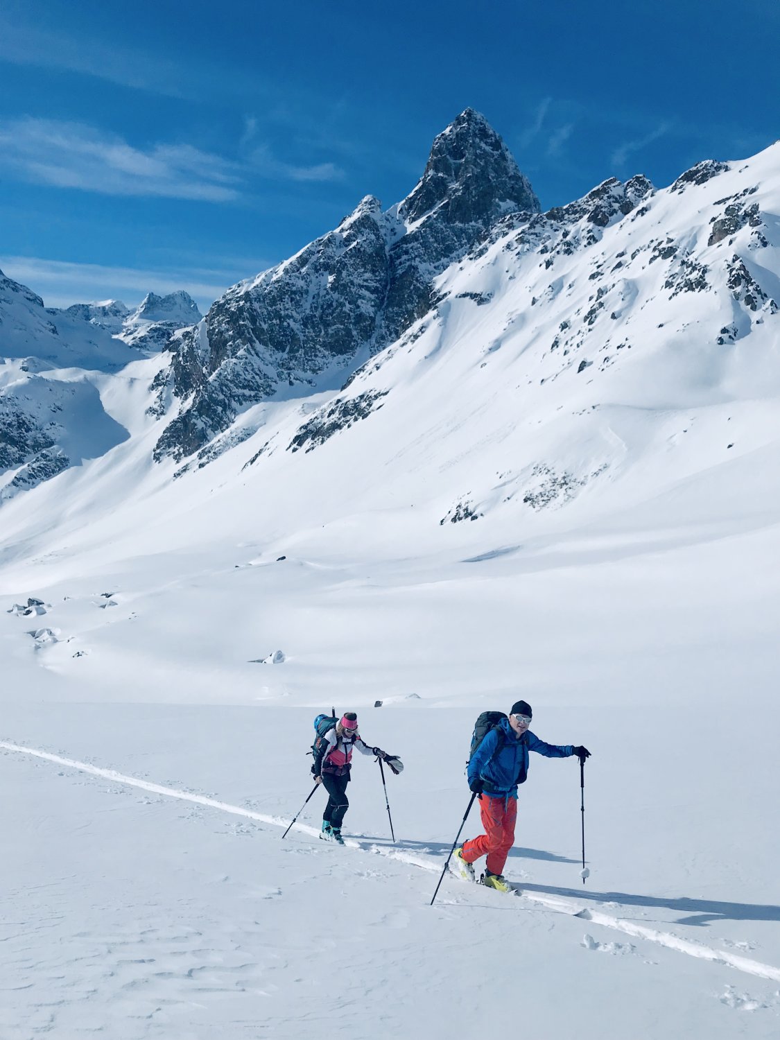 Perfekte Verhältnisse im ganzen Gebiet angetroffen. Pulverschnee von oben bis unten. Ab Guarda (ca. 70 cm Schnee) auf gut präpariertem Weg bis zur Tuoihütte. Ab da neu gespurt, bis Gipfel. Ueberall genug gesetzter Neuschnee, der sehr wenig abgeblasen ist (wenig Triebschnee)im Vergleich zu anderen Gebieten. Ganze Abfahrt Pulver. Im Bereich Hütte unterhalb 2400m dann etwas gedeckelt und hart.
