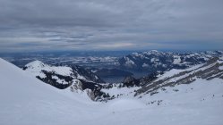 Obschon Stufe 3 Erheblich (ab 1800), wurde der Brisen gemacht. Wir haben drei Personen in der Abfahrt Richtung Gitschenen gesehen. Der angesagte Sturm blieb bis 14h (unsere Rückfahrt ab Niederrickenbach) aus. Immer ein Besuch wert ist das Pilgerhaus in Maria-Rickenbach. Tolles Kuchenbuffet und sehr netter Service!