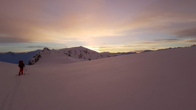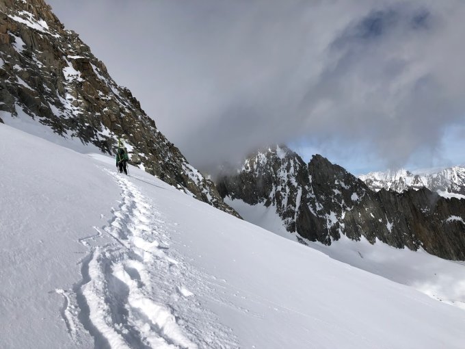 Wird wohl gut bleiben. Über die direktere Route wären auch die Schneeverhältnisse besser, dafür ist vorsicht geboten wegen der Schneewächte am Grat. Da ist man ziehmlich in der Falllinie