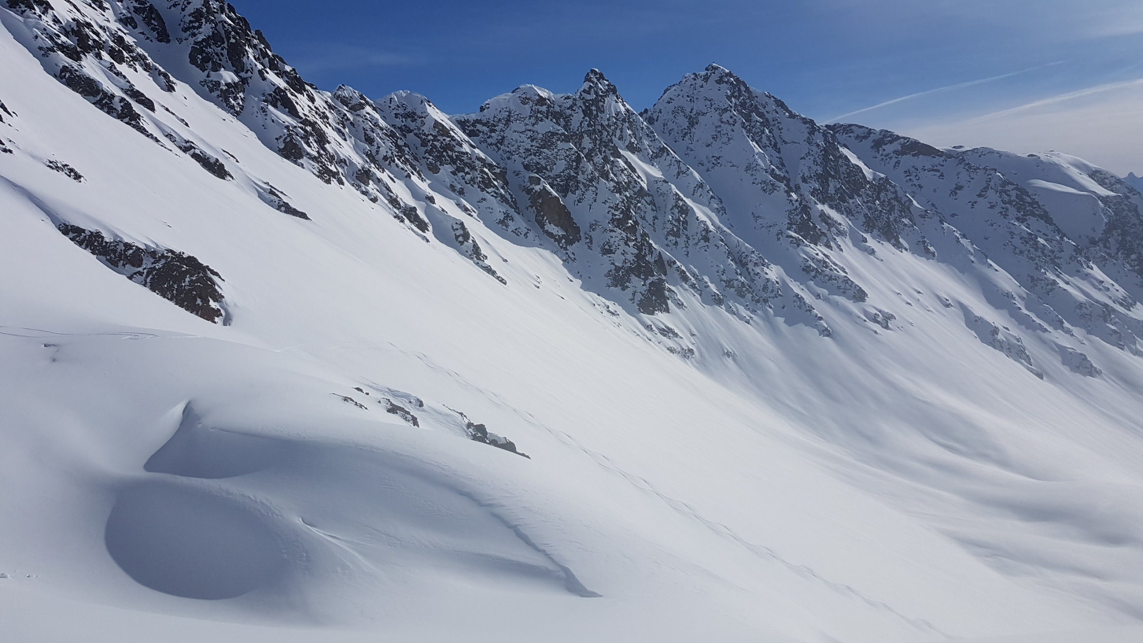 Von der Fuorcla d'Agnel runter dann doch noch einige schöne Hänge gefunden, oben stark verblasen.