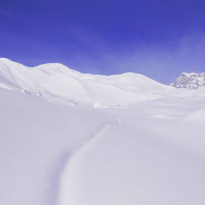 Ganze Tour wurde gesegnet mit dem weissen Gold. Hie oben hat es definitiv mehr geschneit als angegeben. Aufstiegsspur kaum mehr gesehen Gipfelhang dafür unverspurt.