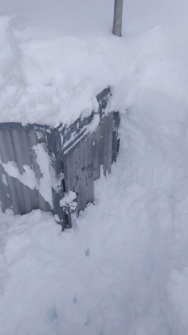 WC auf der Carschinahütte frei geschaufelt. Der Schnee rundum soll ja weiss bleiben.